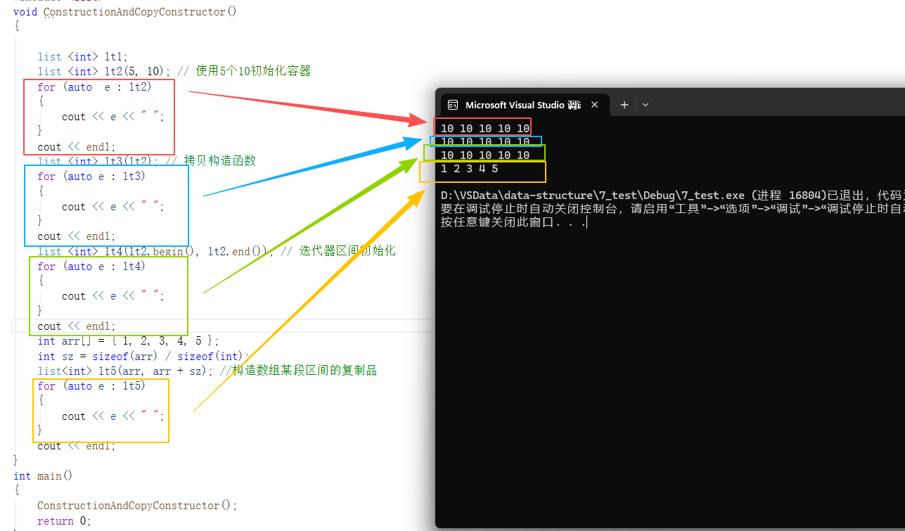 list<int> lt5(arr, arr + sz); //构造数组某段区间的复制品