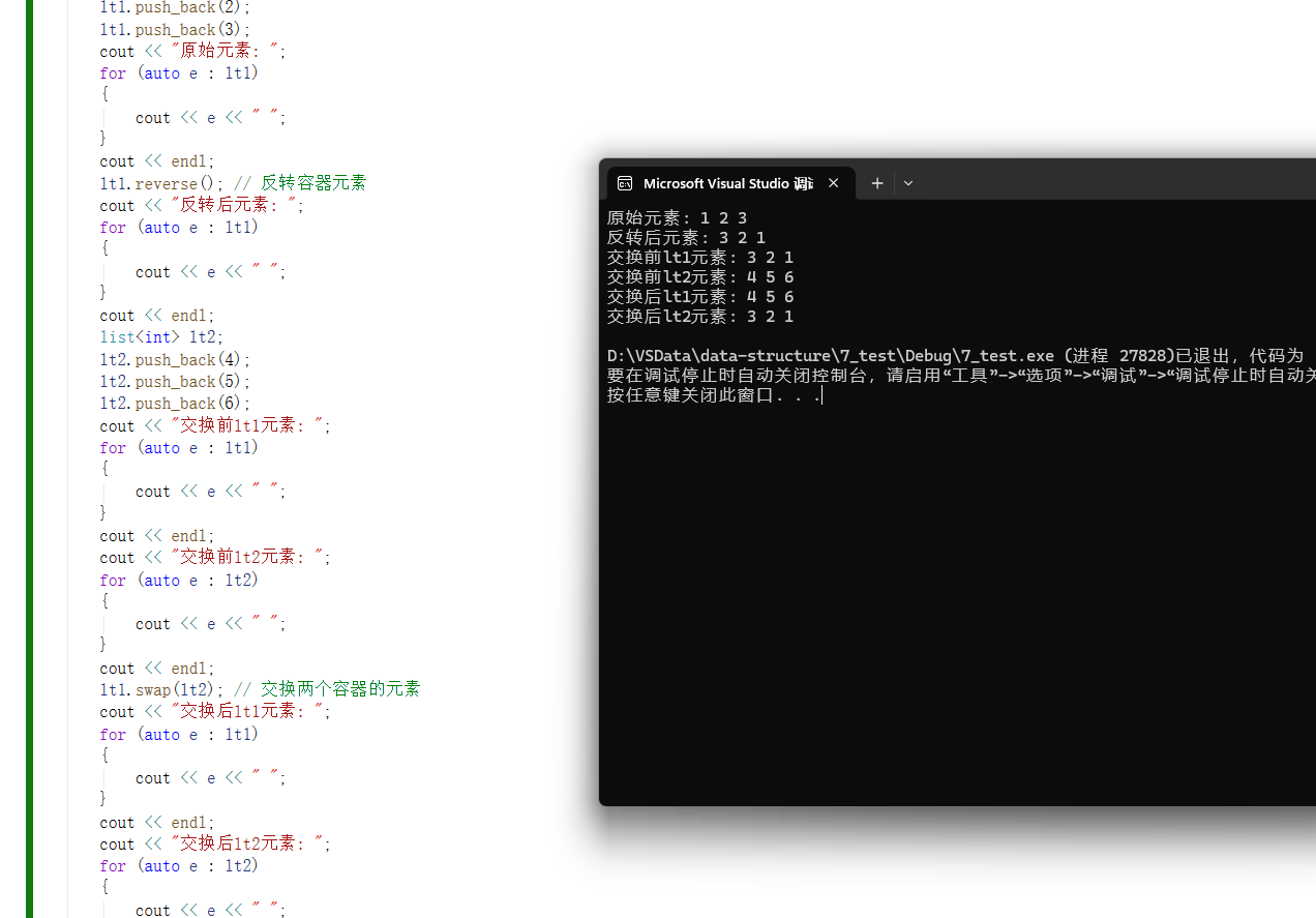 lt1.swap(lt2); // 交换两个容器的元素