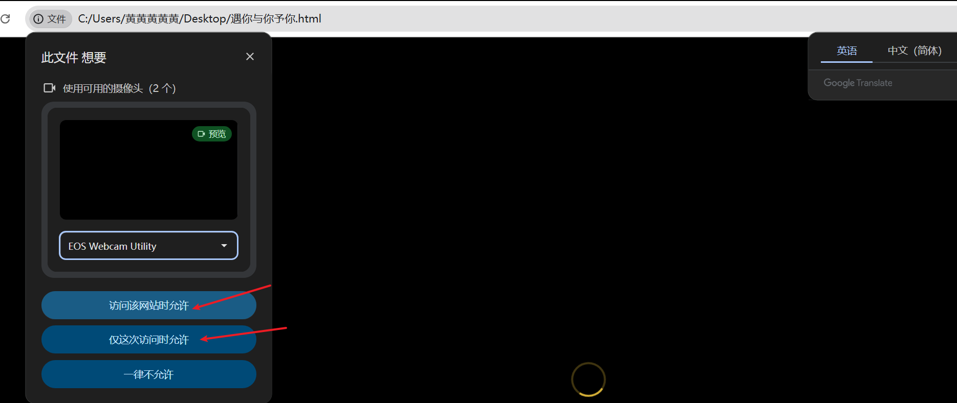 4.如果选择本地文件打开,一定要授权摄像头的操作