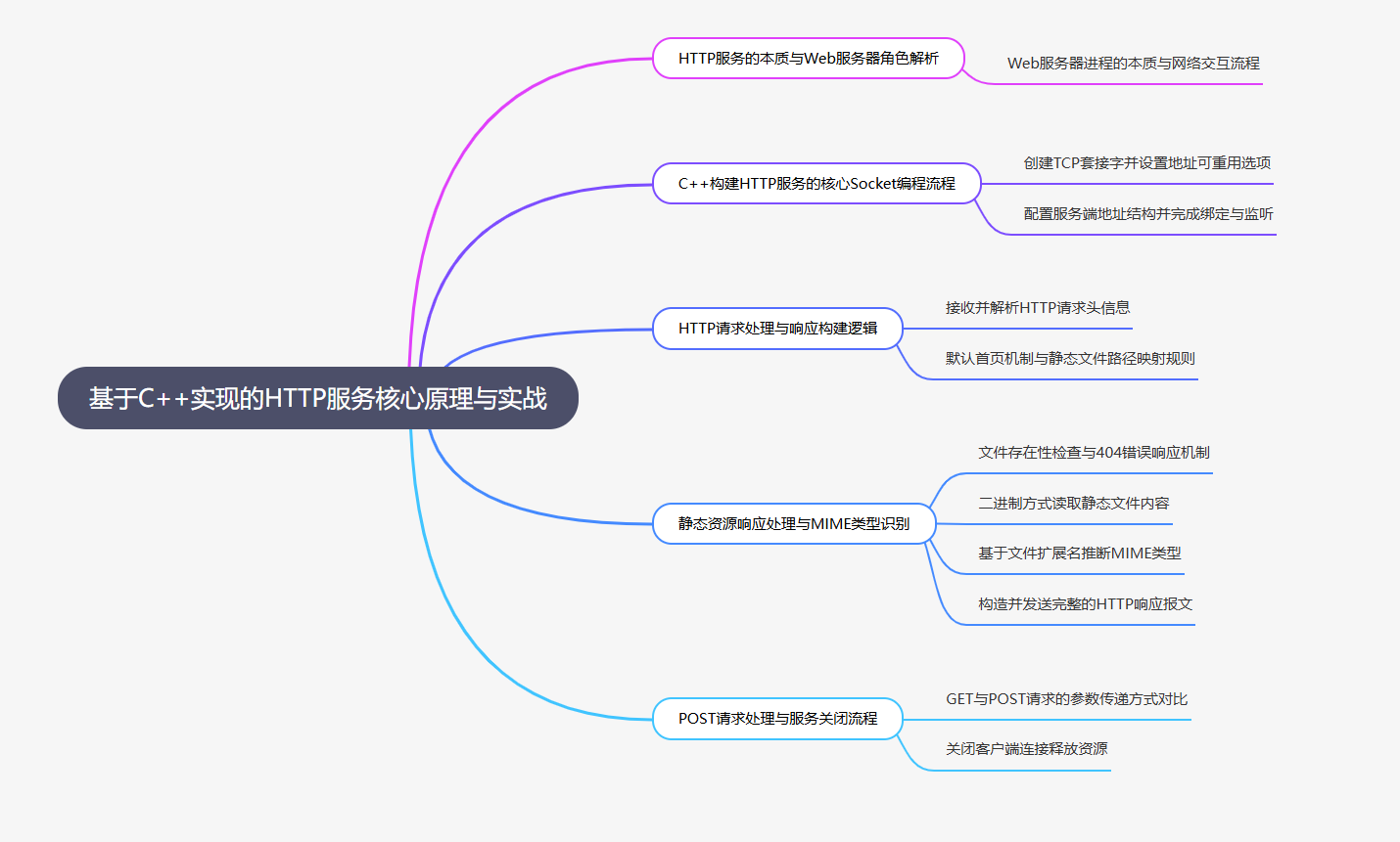 作为C++网络编程新手,我曾对着B站的《68.用C++实现http服务》视频学习,视频里老师快速串了HTTP协议格式、TCP socket编程和服务端代码实现,我抄完socket(AF_INET, SOCK_STREAM, 0)的代码,转头就把bind函数的参数顺序搞反;跟着视频解析HTTP请求头时,漏了"\r\n\r\n"的结束标识,导致服务端一直阻塞在读取请求;本地编译时,因缺少libcurl库报错,翻遍教程配置依赖耗了整整2小时------原来"看代码→抄代码→报错→放弃"的循环并不适用,学习HTTP服务实操更需要把零散的协议知识和代码逻辑串成体系,这样比纯看视频硬记高效太多。