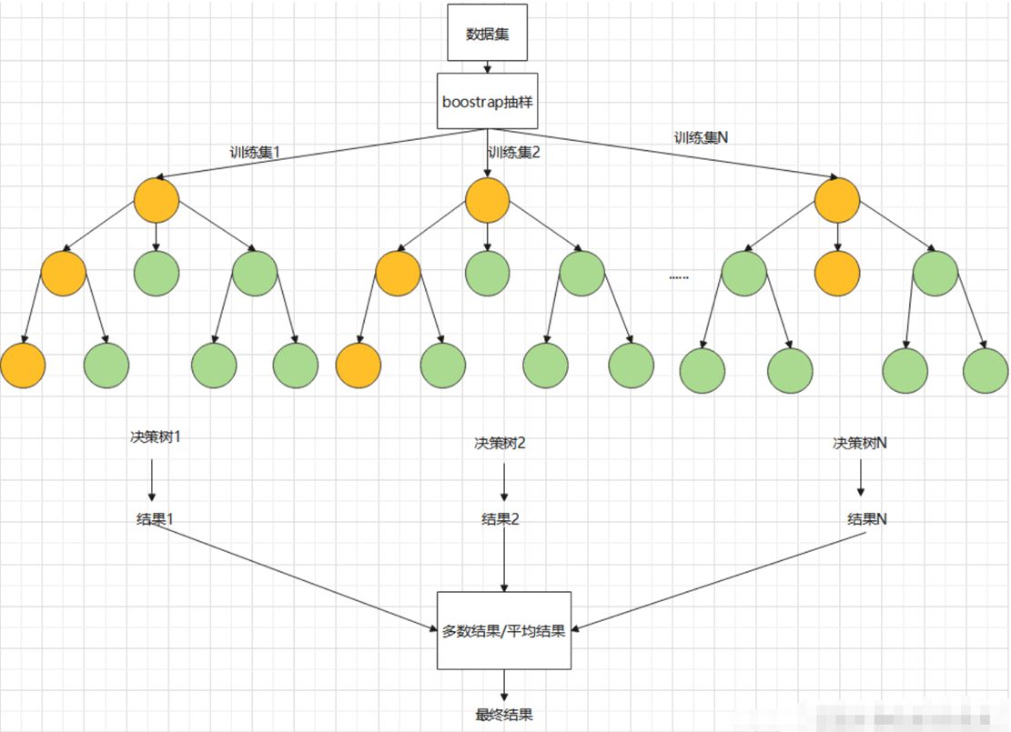 "森林":由多棵决策树构成的"森林",最终的预测结果由所有决策树共同决定(例如,通过投票)。