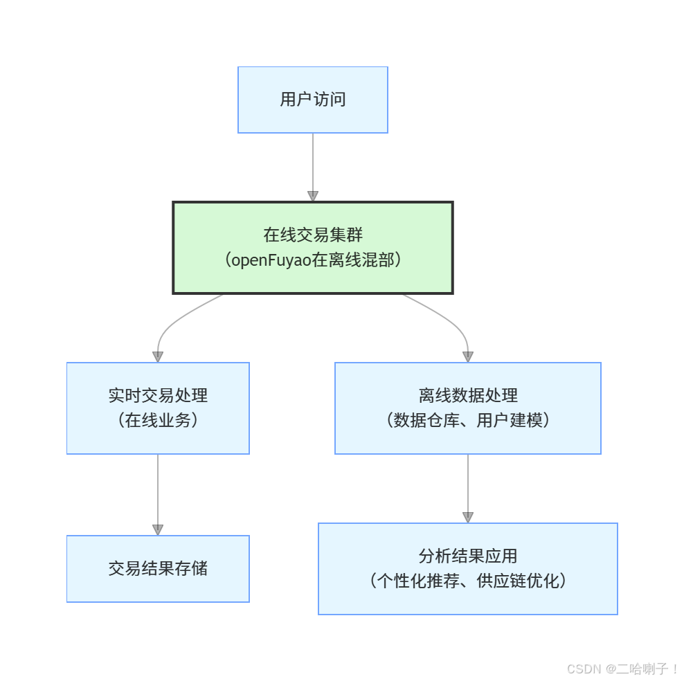 在线业务(如电商交易、实时社交)与离线业务(如数据批处理、模型训练)的资源需求存在时间互补性:在线业务高峰通常集中在白天,离线业务则适合在夜间运行。传统方案将两类业务部署在独立集群,导致资源利用率低下。openFuyao的在离线混部技术通过三大核心机制实现资源高效复用: