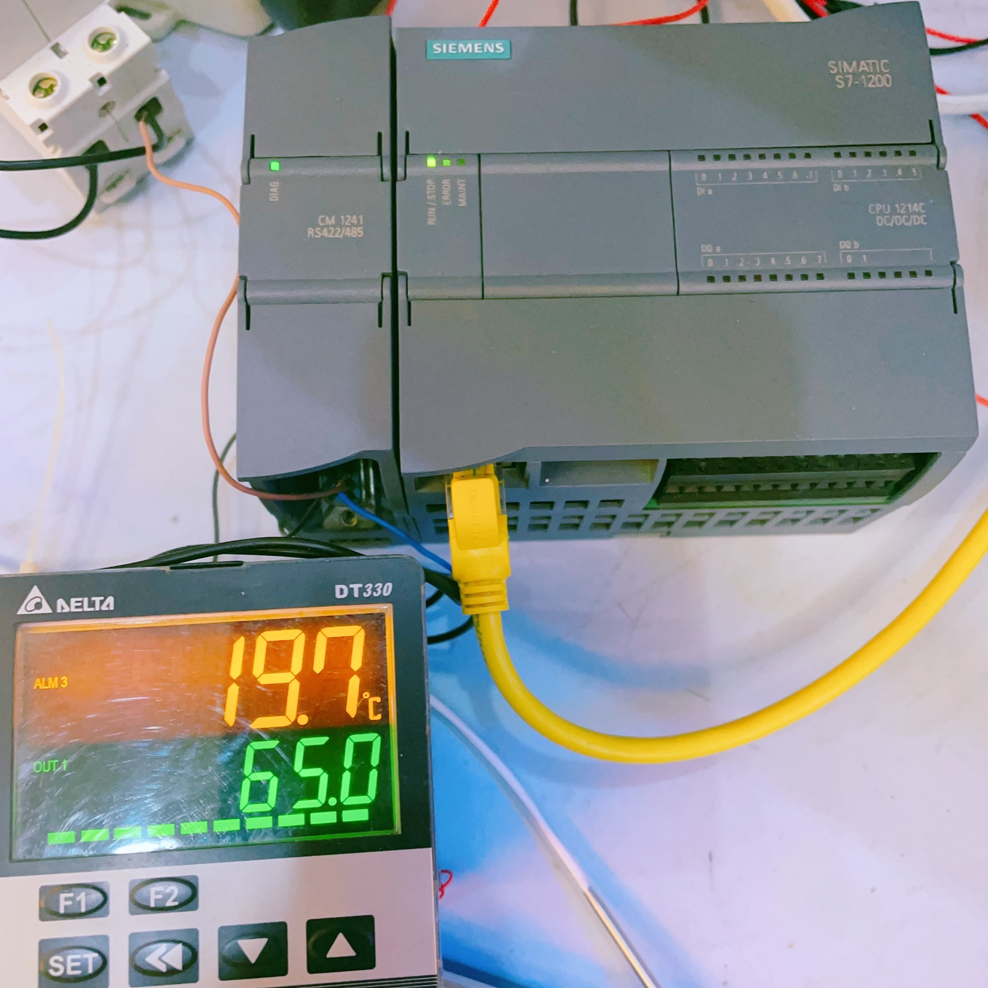 - 在西门子1200侧,找到其485通讯端口,通常为PORT1。将其1号引脚(RS485+)连接到台达DT330温控器485通讯接口的A端。