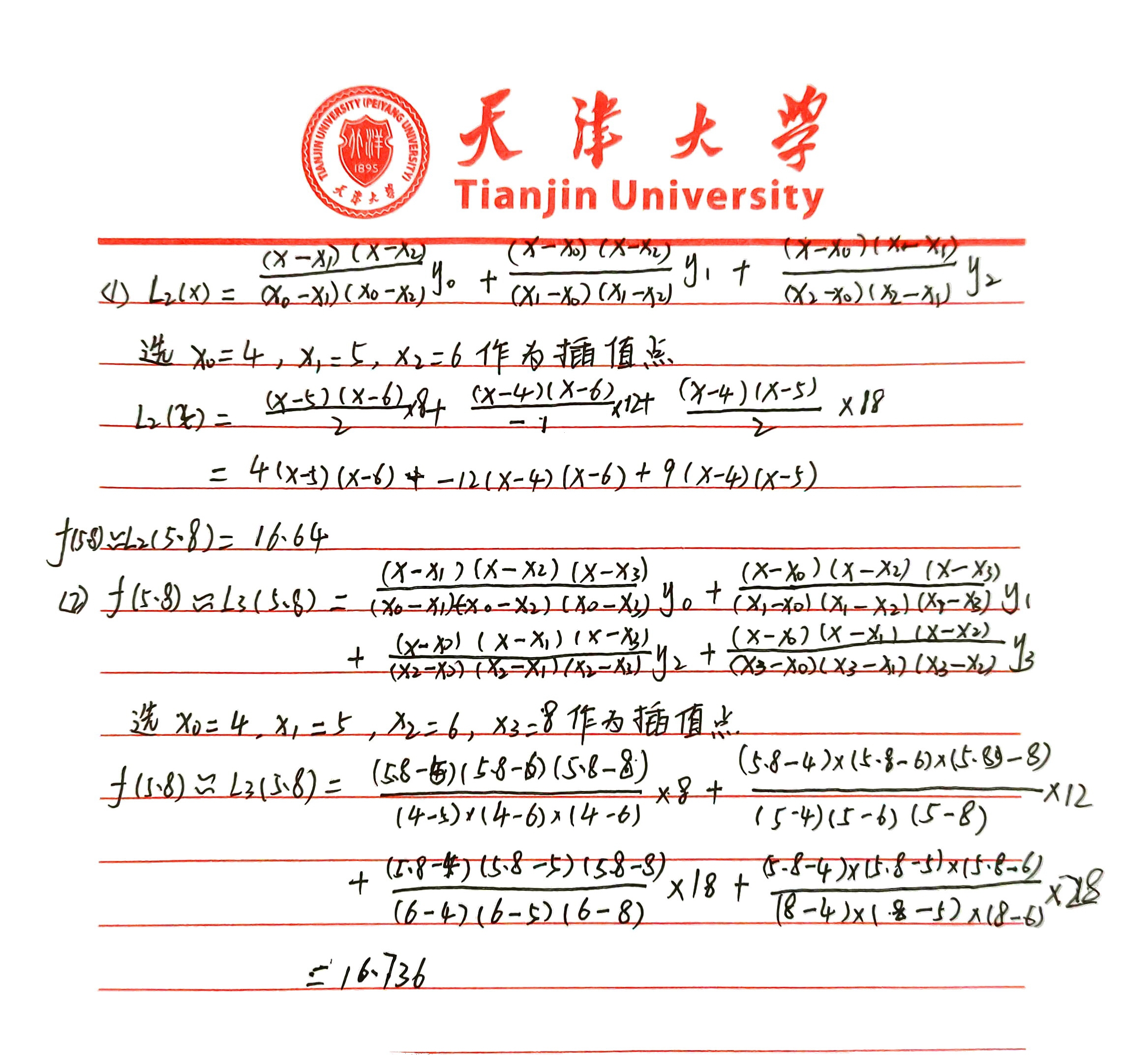当 n = 2 n=2 n=2 时,Lagrange插值为