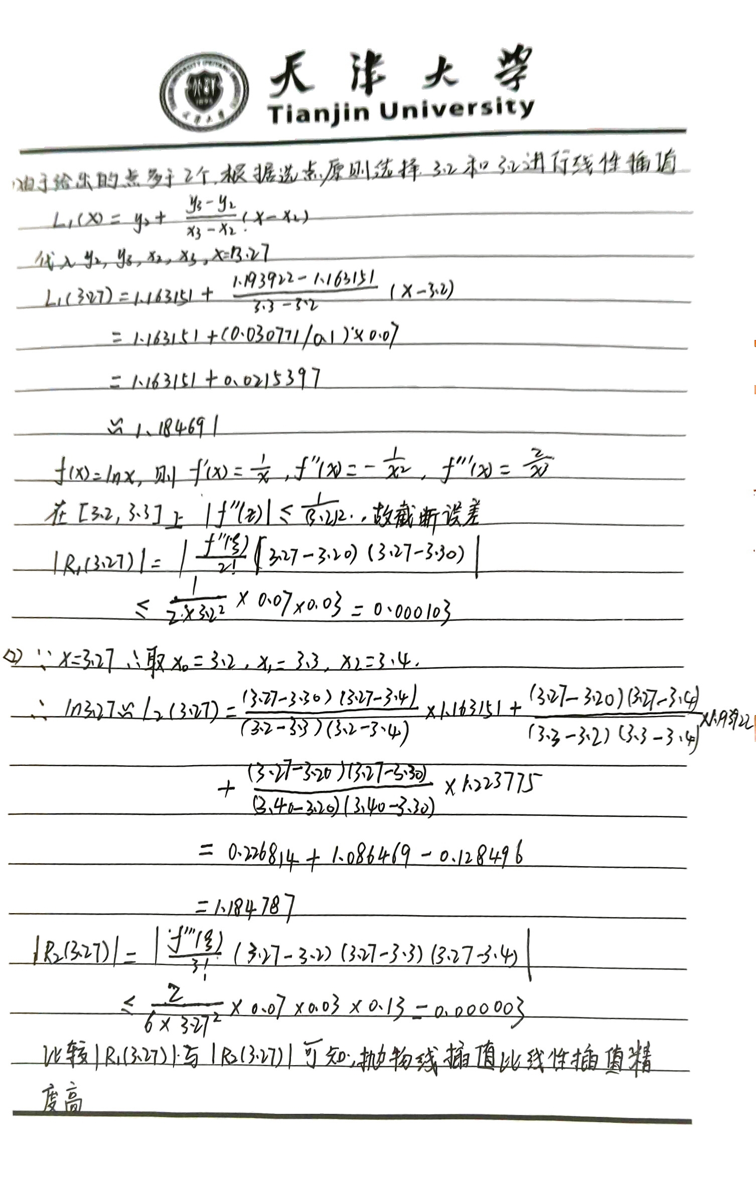 线性插值是当 n = 1 n = 1 n=1 时的Lagange插值多项式是线性插值,那么当 n = 2 n=2 n=2 时的插值就是抛物线插值