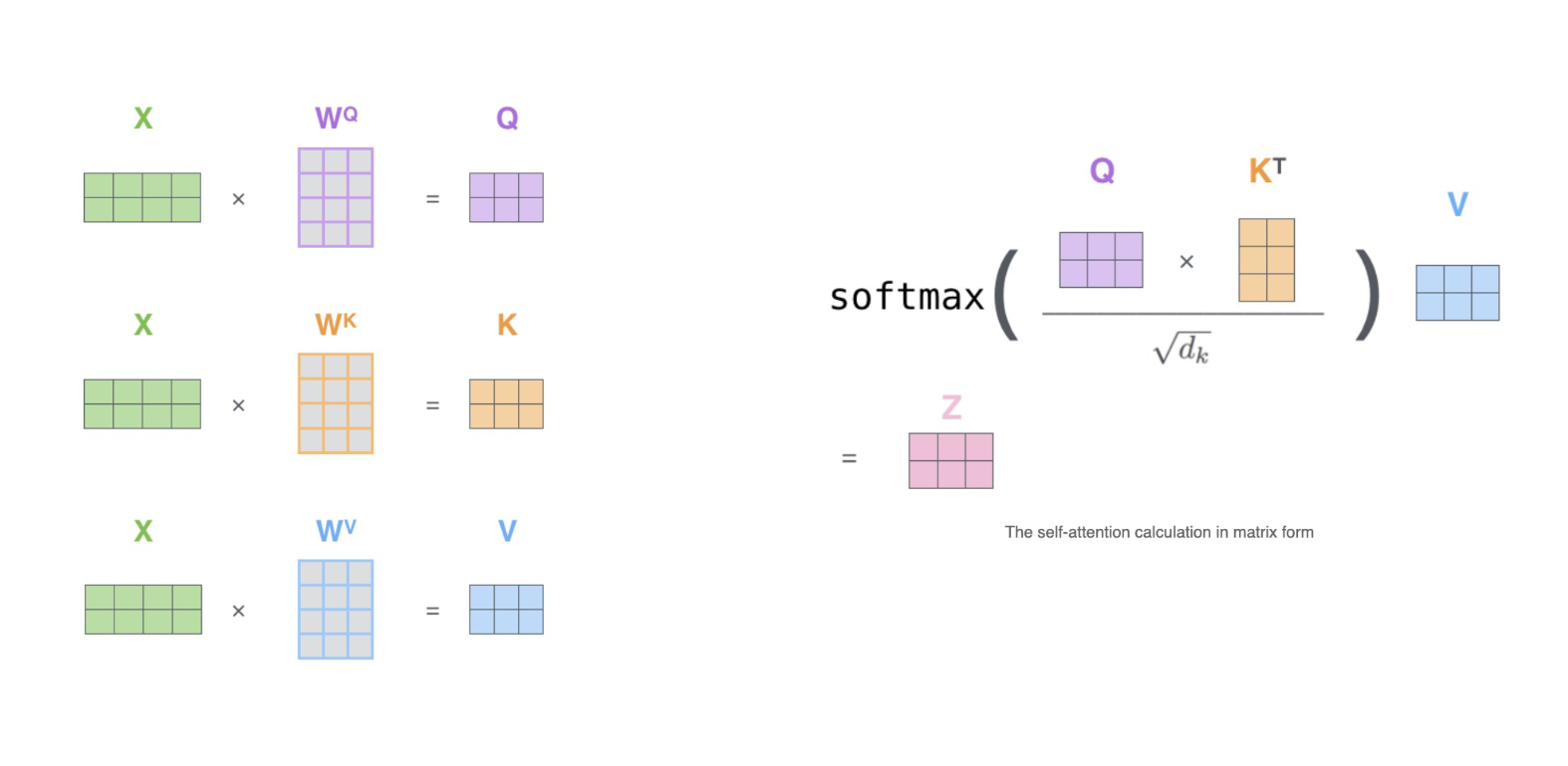 Attention(Q,K,V)=softmax(QKTdk)VAttention(Q,K,V) = softmax(\frac{QK^{T}}{\sqrt{d_k}})VAttention(Q,K,V)=softmax(dk QKT)V