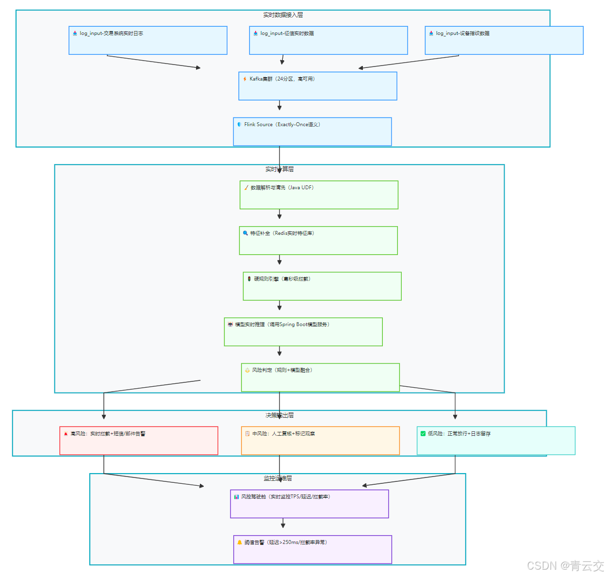 - [2.3 实时风控层:Flink 流处理 + 高并发优化(欺诈交易拦截核心)](#2.3 实时风控层:Flink 流处理 + 高并发优化(欺诈交易拦截核心))