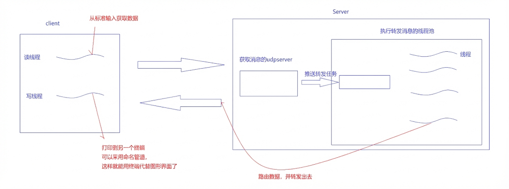 主线程 :负责从标准输入读取数据,调用 sendto。