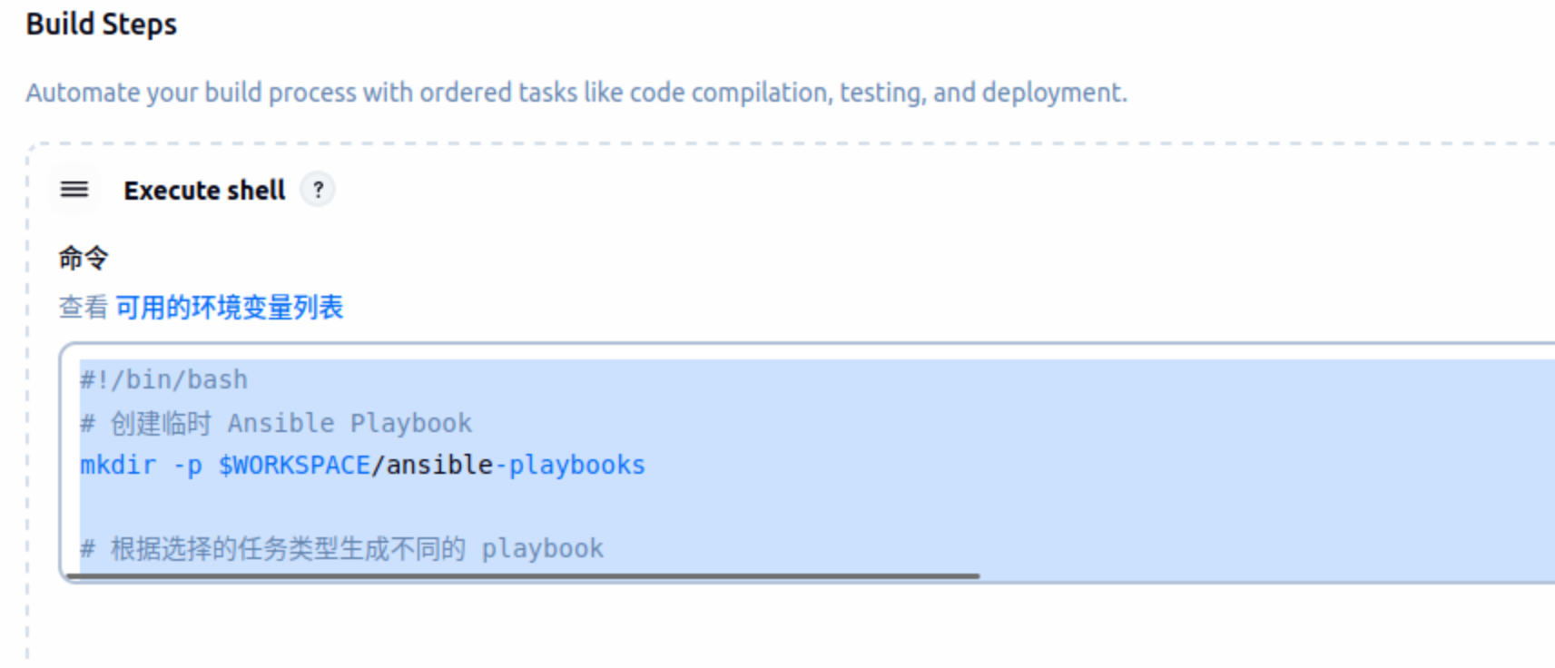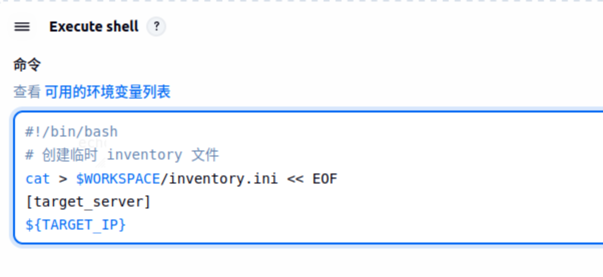 ## 2.创建一个自由风格任务,使用 Ansible 实现对远程服务器的参数化构建,要求能够通过 Jenkins 参数动态指定目标服务器的 IP 地址和构建任务。