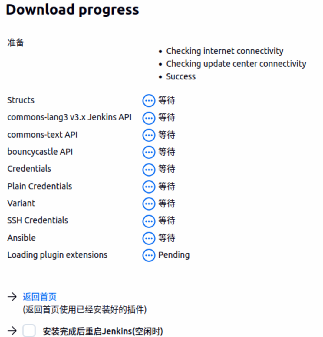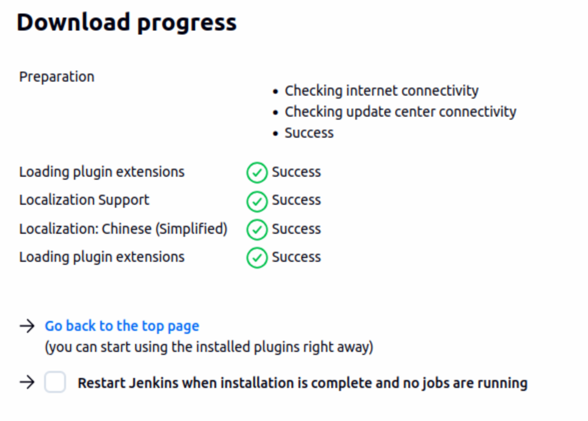4. 点击**Install without restart**(安装完成后建议重启 Jenkins);