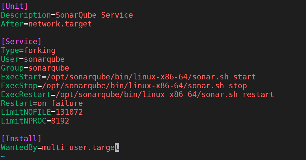 配置系统服务vim /etc/systemd/system/sonarqube.service
