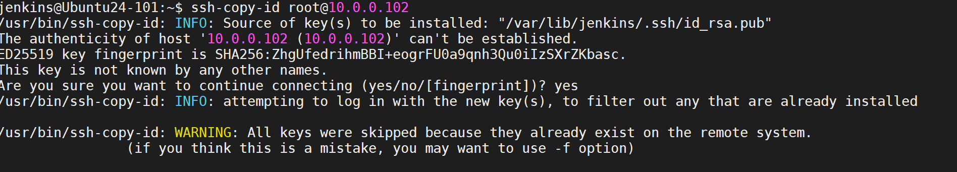 确保 Jenkins 服务器可以通过 SSH 无密码访问目标服务器: