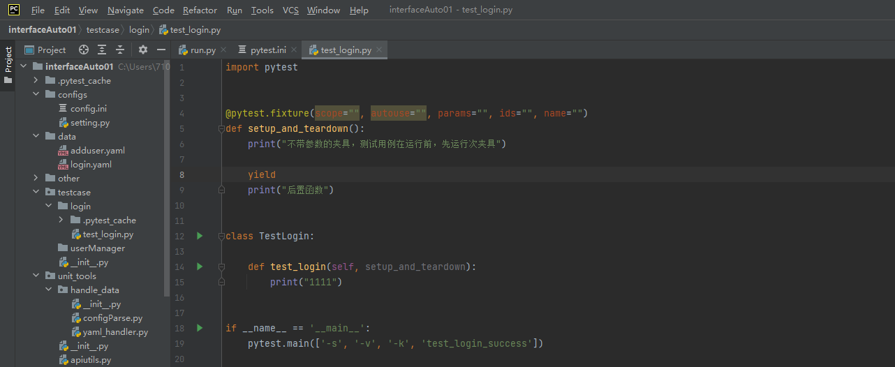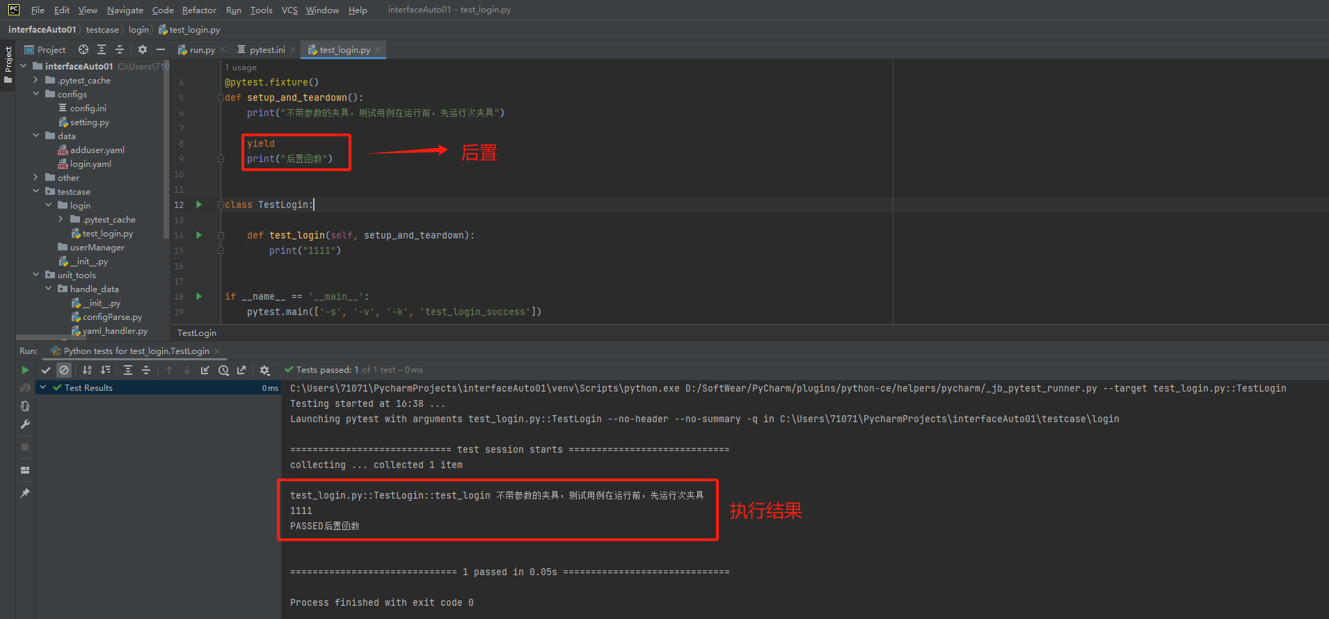(1)夹具的定义:在用例执行之前或者执行之后,自动运行代码