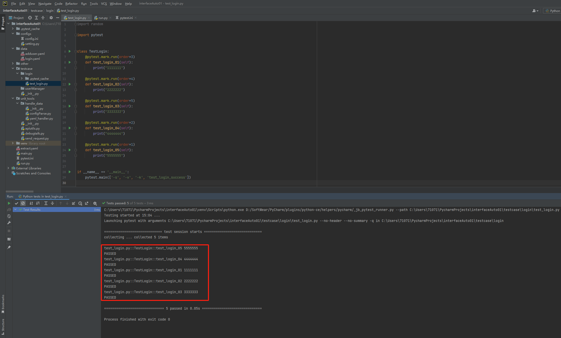 (2)主函数模式:main方法,在项目的根目录下创建单独的run.py文件,然后将主函数代码放置在改文件中,从而控制全局的测试用例的执行