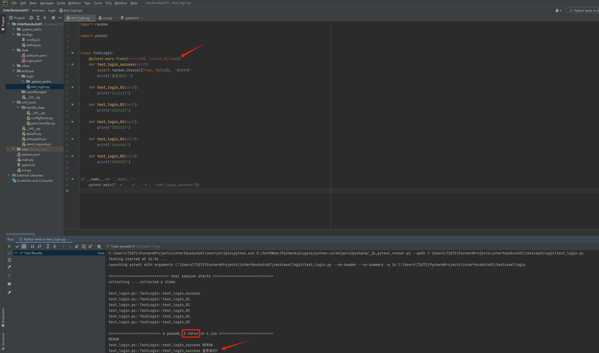 (2)失败重跑:pytest-rerunfailures