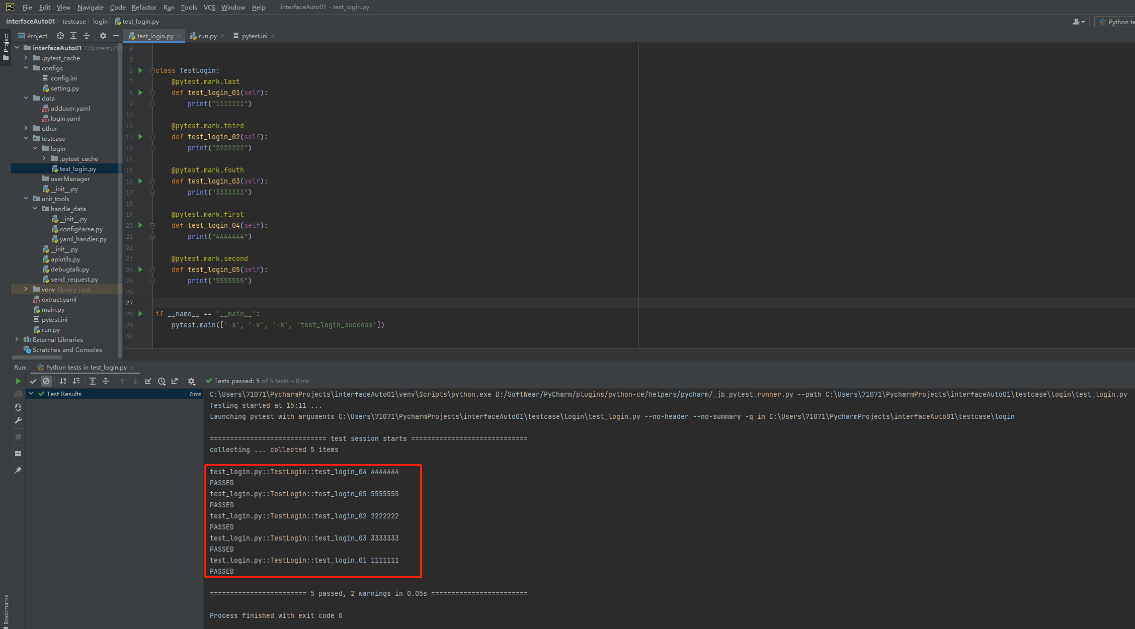 ⑥markers:用于注册自定义标记,配合9.2中测试用例执行顺序使用;