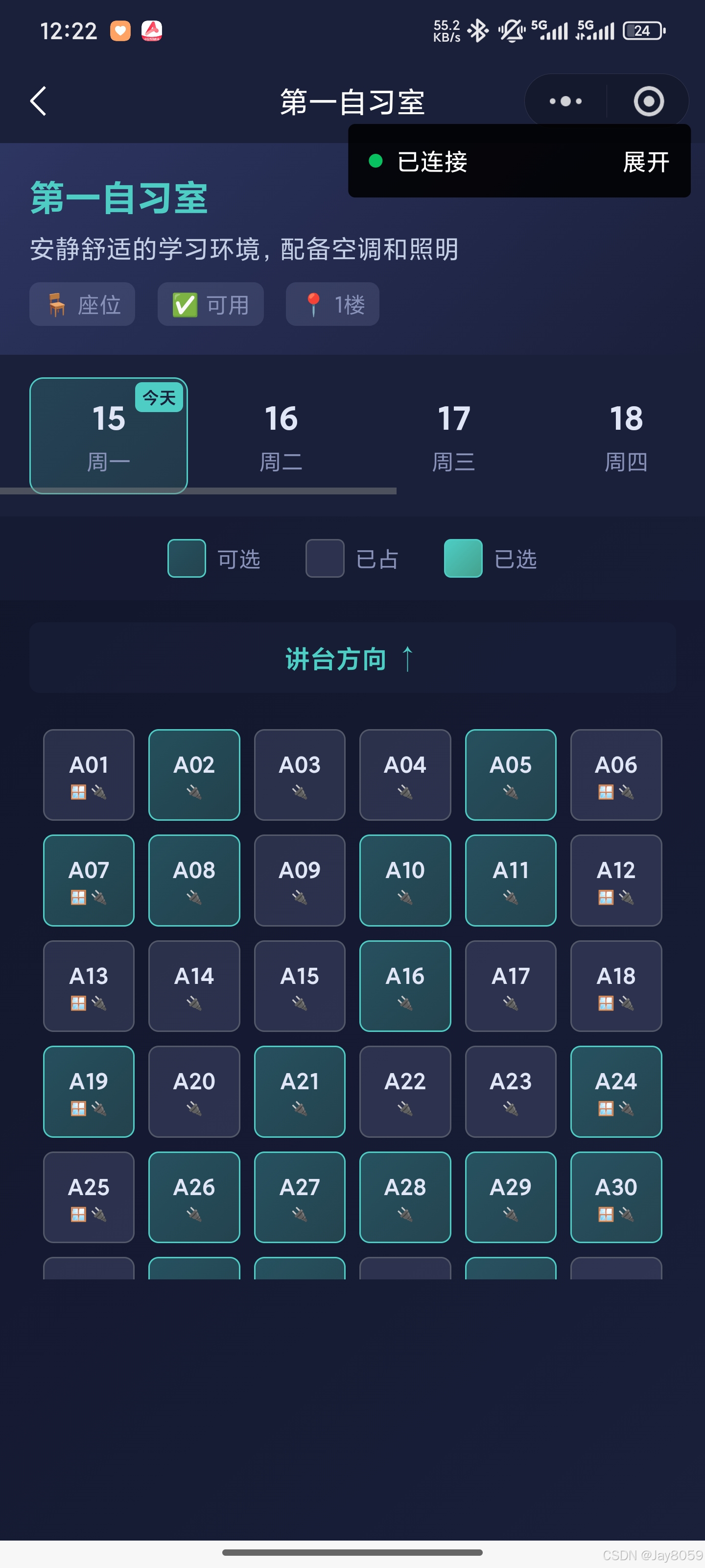 - 自习室浏览:查看所有自习室及其实时座位情况