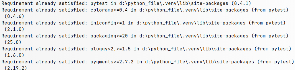 我这里已经安装过了,正常安装成功会出现如 "Successfully installed pytest-8.4.1" 的提示。