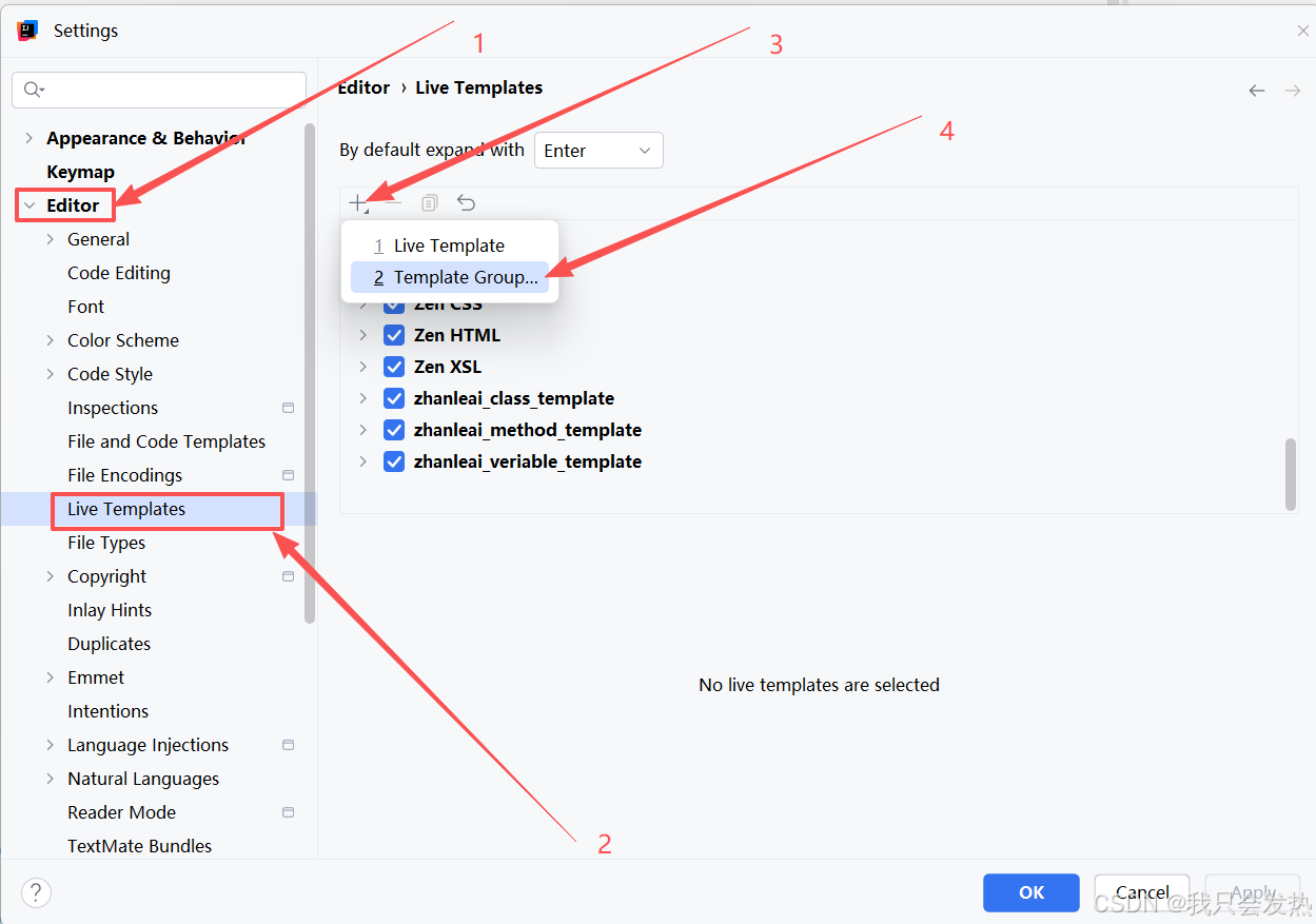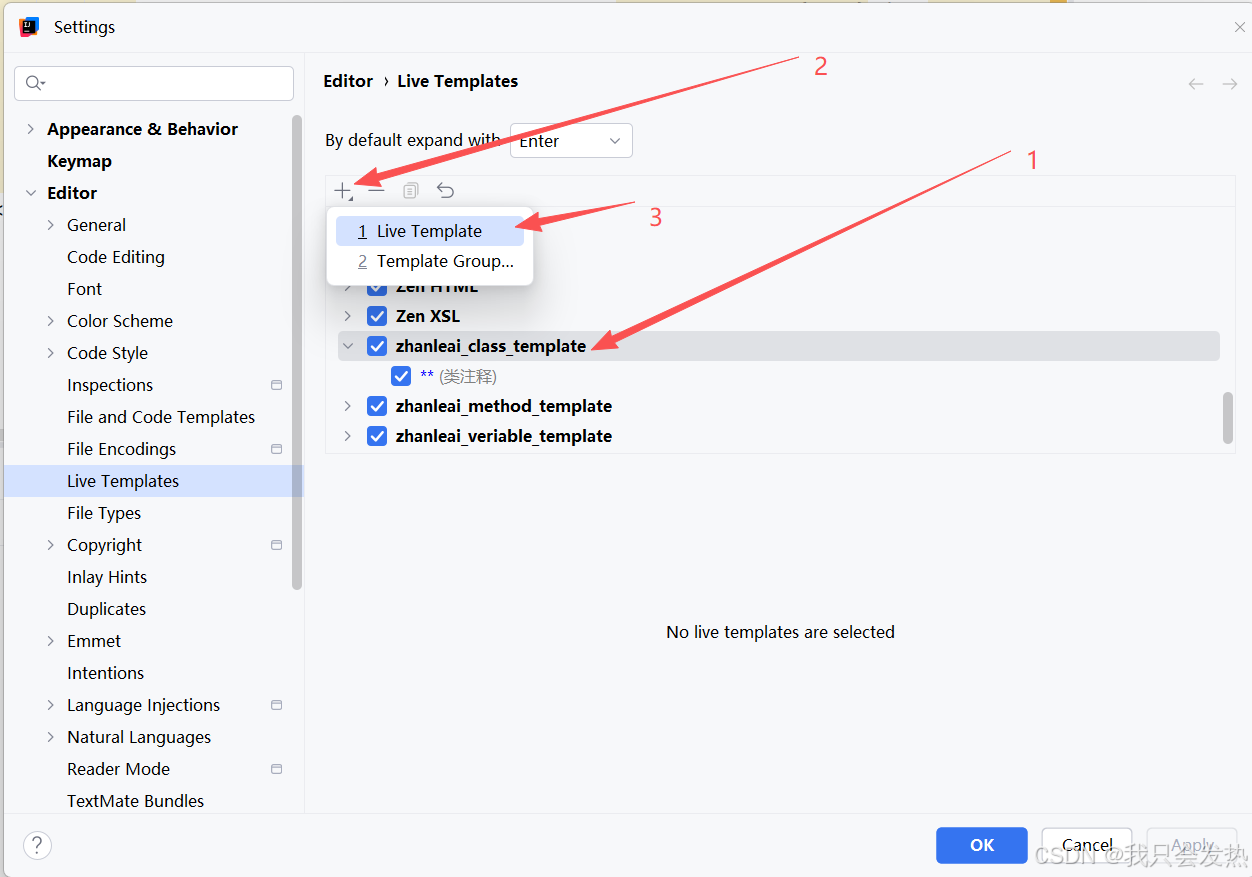 - 在 zhanleai_class_template 下新建 Live Template