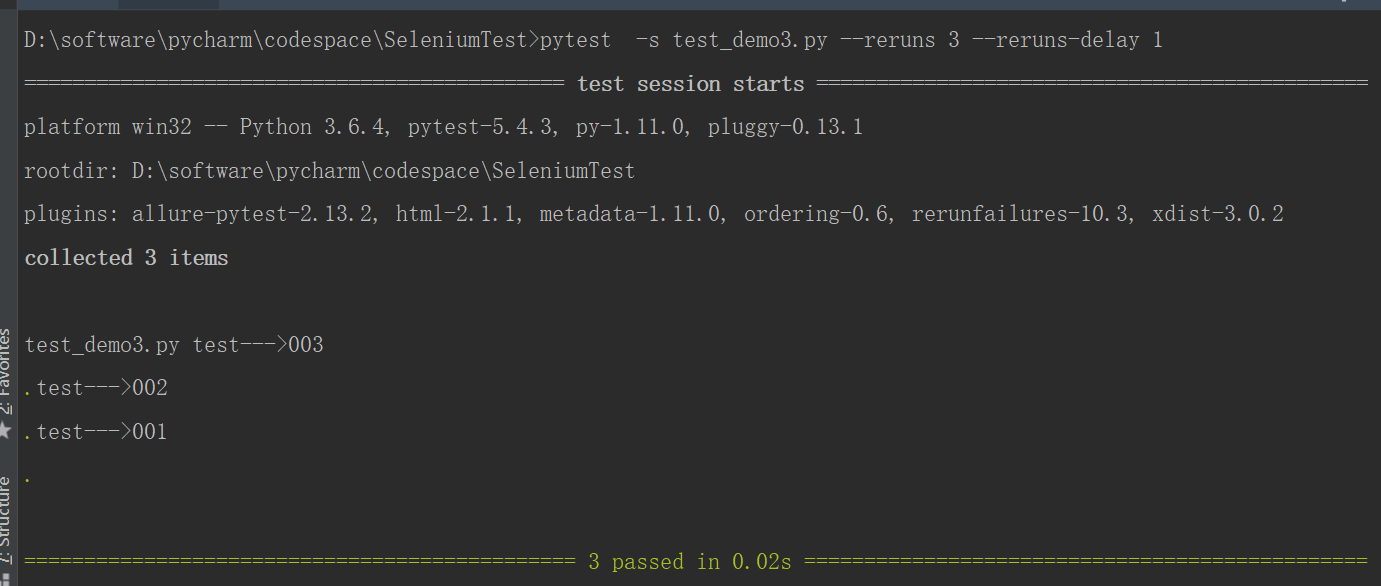 pytest -s test_demo2.py --reruns 3 --reruns-delay 1