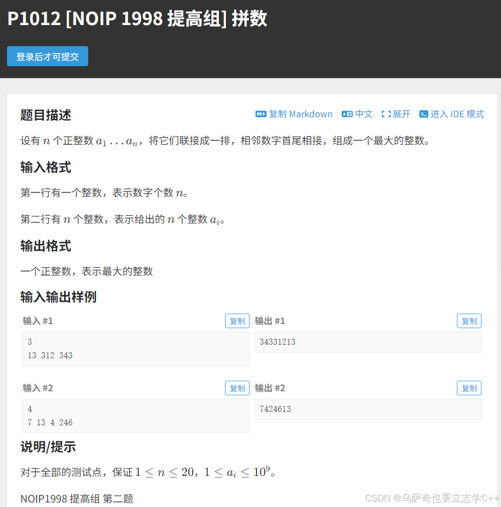 所以本题的策略应该把数直接拼接,然后比较大小确定拼接的前后关系,最后结合排序确定最终序列的前后顺序。