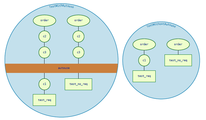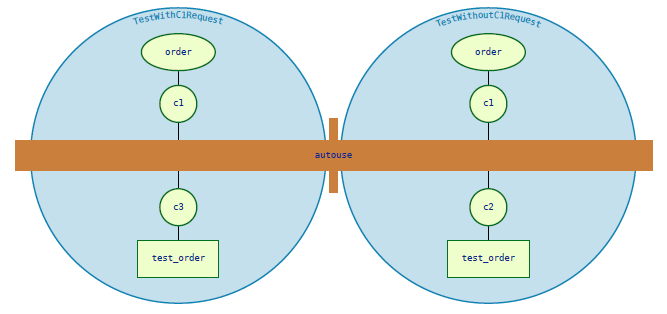 同样地,一个测试也只有在其与自动使用fixture定义在同一作用域内时才会受到该自动使用fixture的影响(参见"自动使用fixture在其作用域内首先执行")。