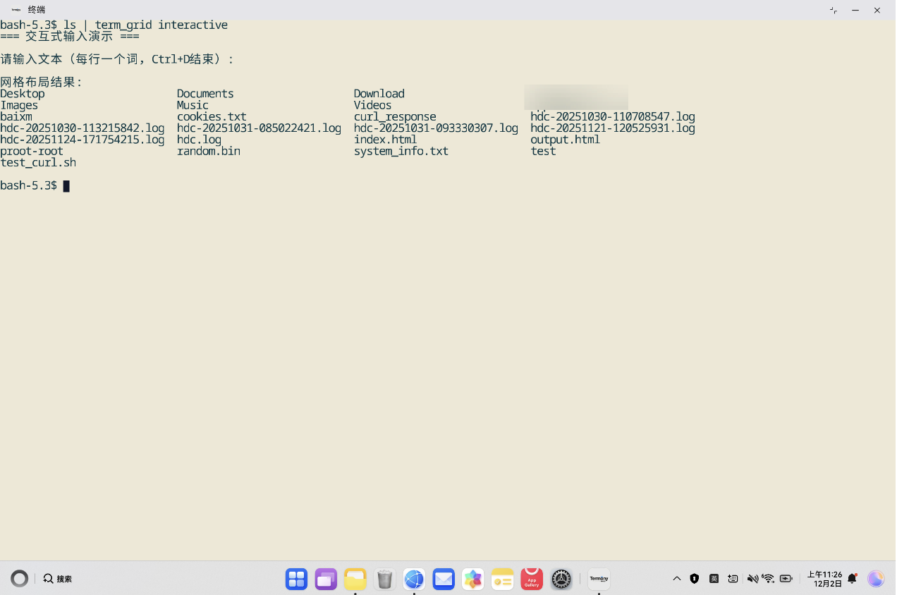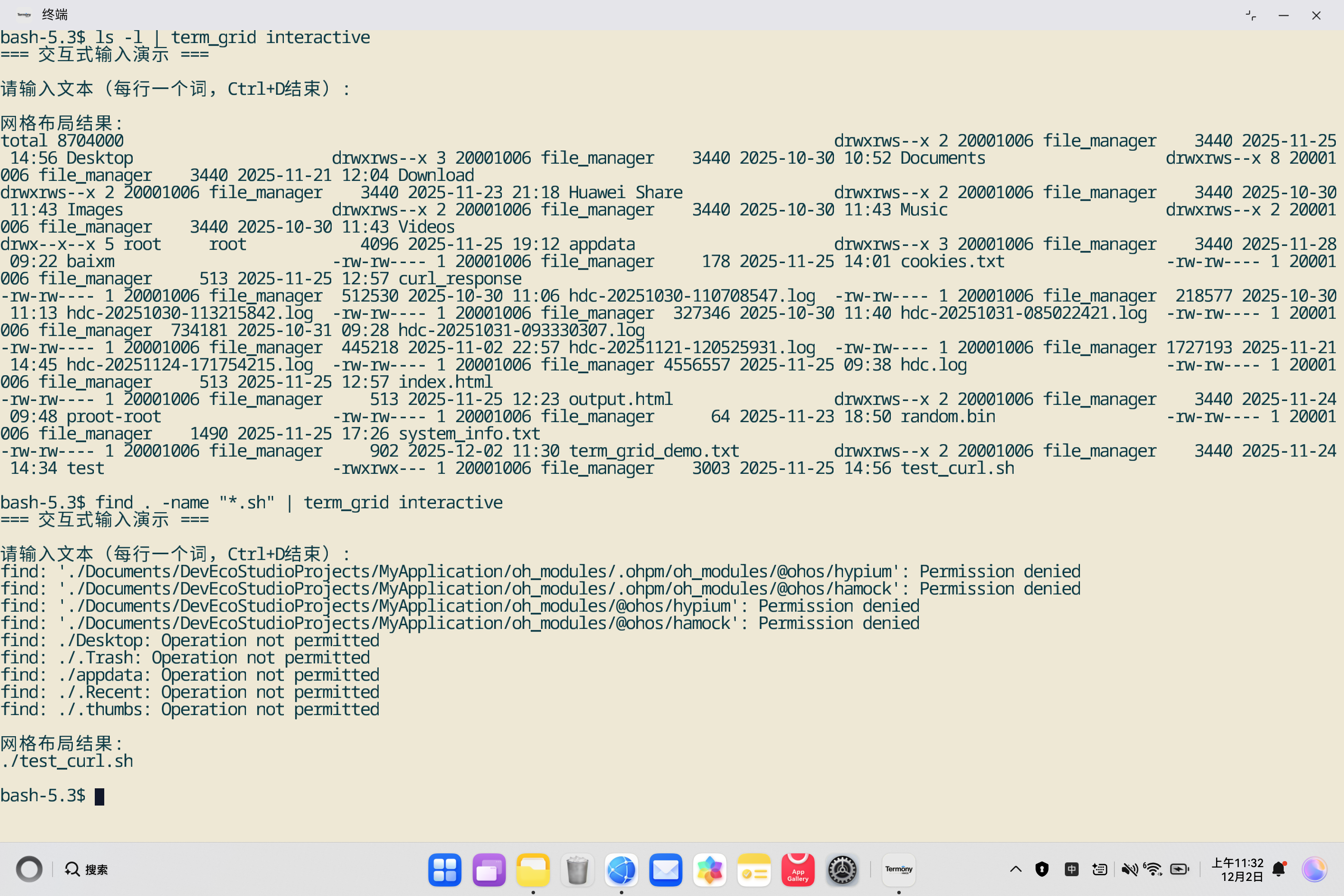 将term_grid命令行工具适配到鸿蒙PC(OpenHarmony PC)平台,实现: