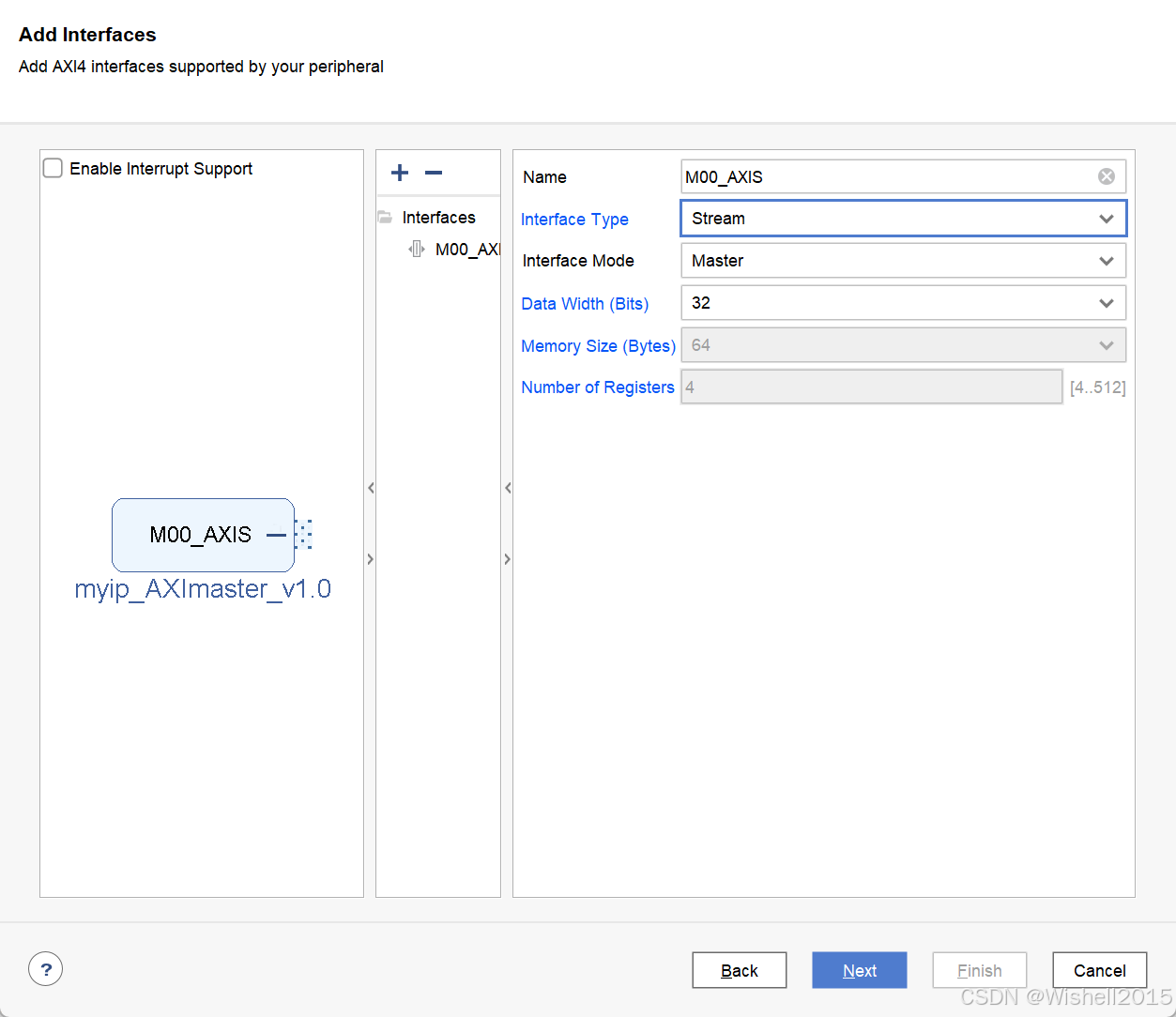选择Stream接口,接口类型选择主机Master,数据位宽32位