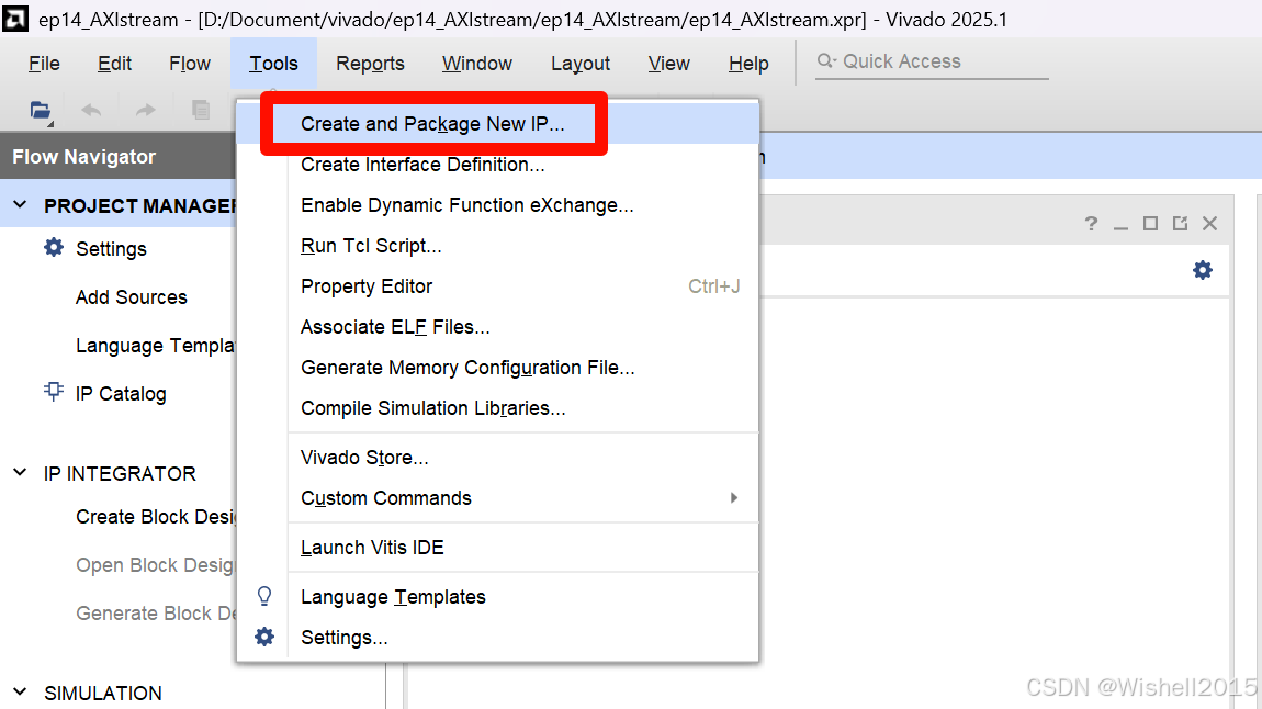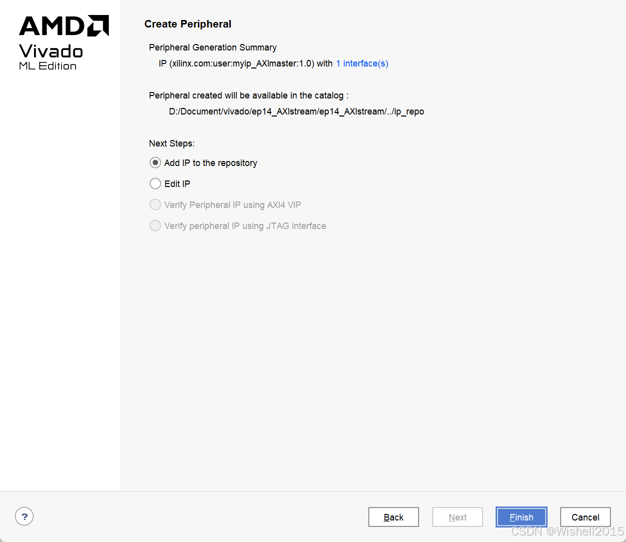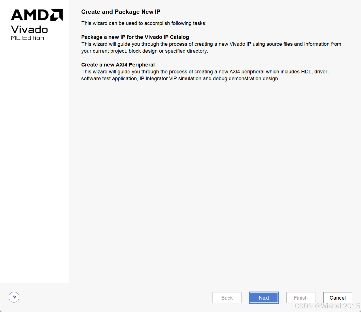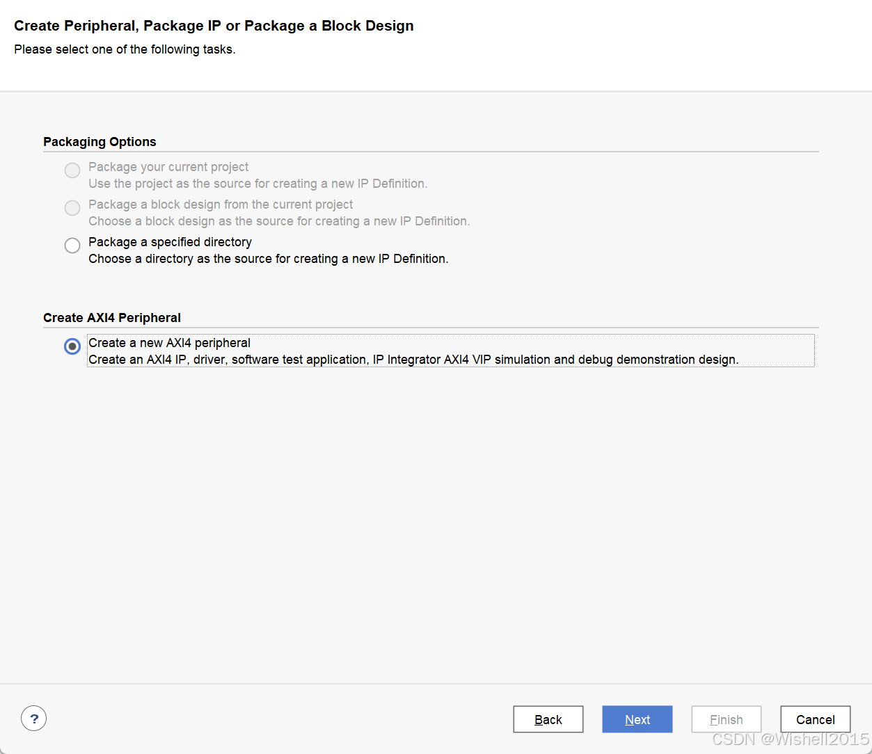 4. Create a new AXI4 peripheral (创建一个新的 AXI4 外设): 这不是封装现有的代码,而是生成代码模板。它会启动一个向导,帮你生成一个带有 AXI4 总线接口(AXI4-Lite, AXI4-Full, 或 AXI4-Stream)的 Verilog/VHDL 框架代码。