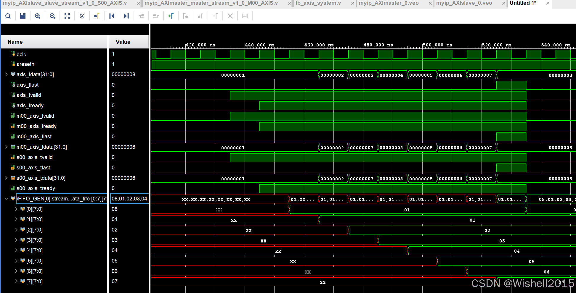 8的时候,axis_tlast拉高了,表示包结束。 - 握手逻辑正确 :数据只有在