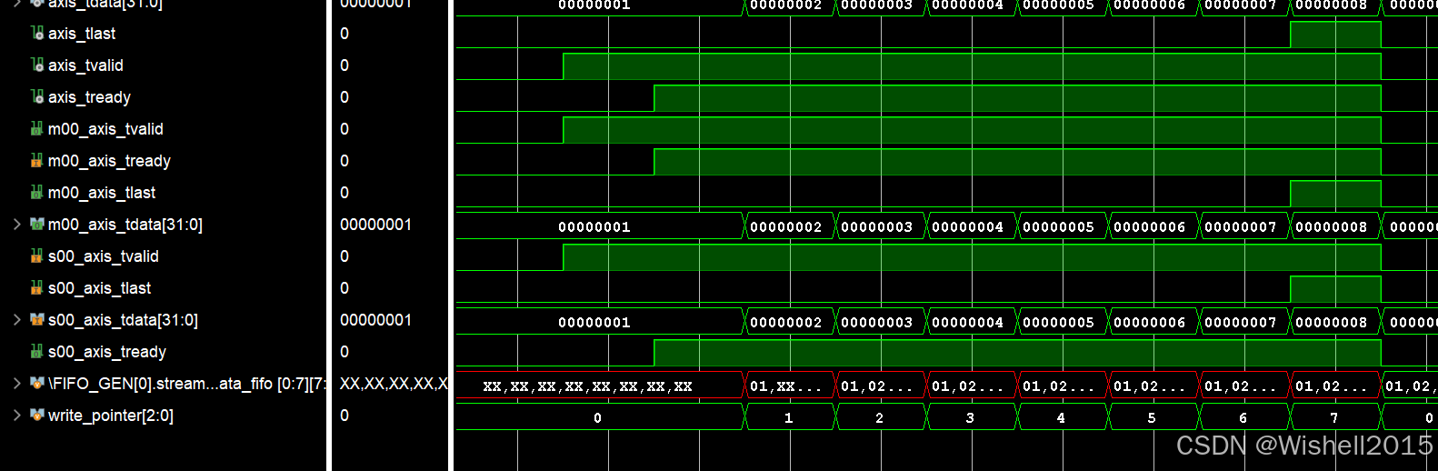 TVALID,下一拍我就跳到 WRITE_FIFO 准备收数据。 - 在 WRITE_FIFO :我就一直收,直到