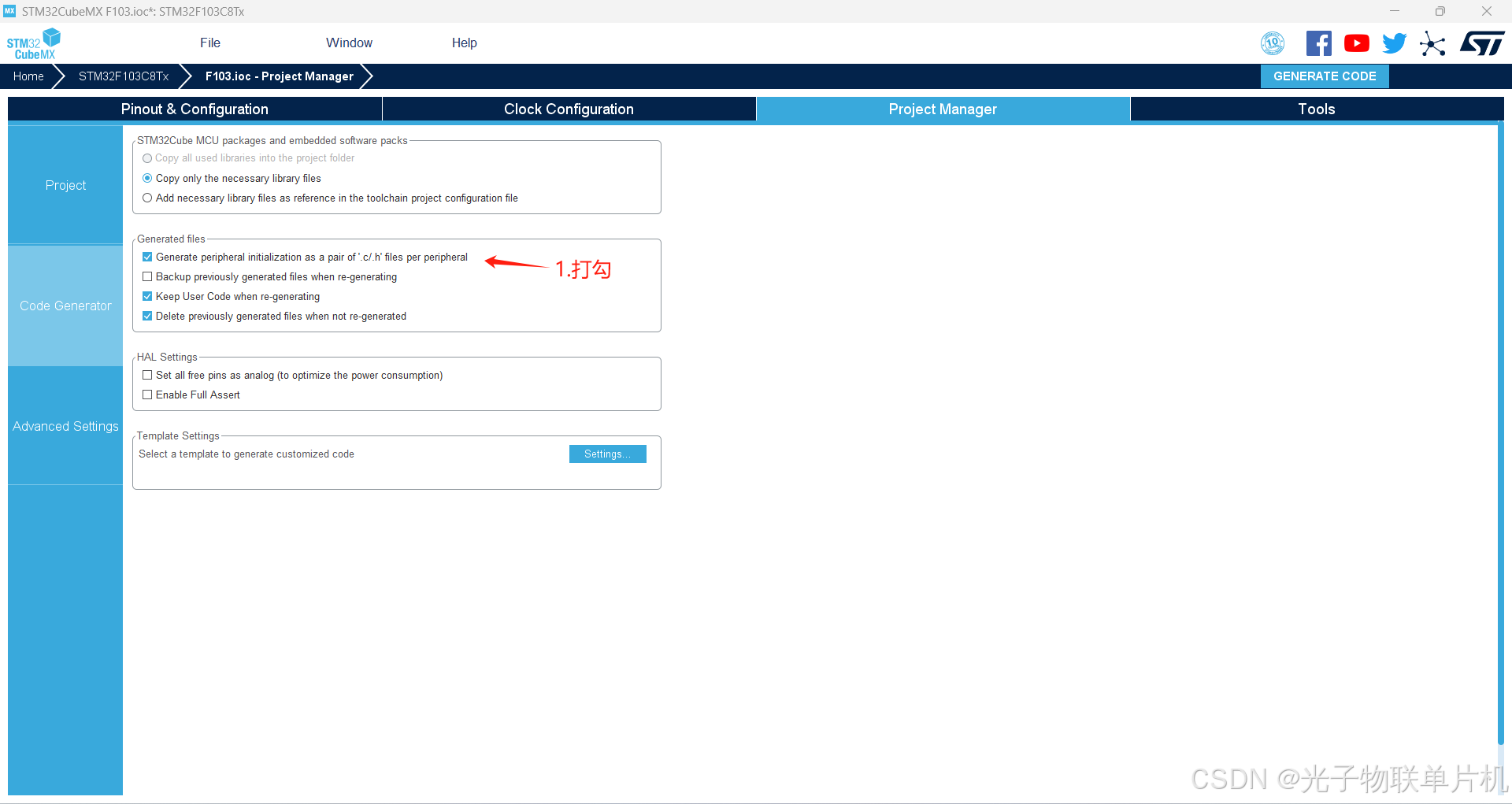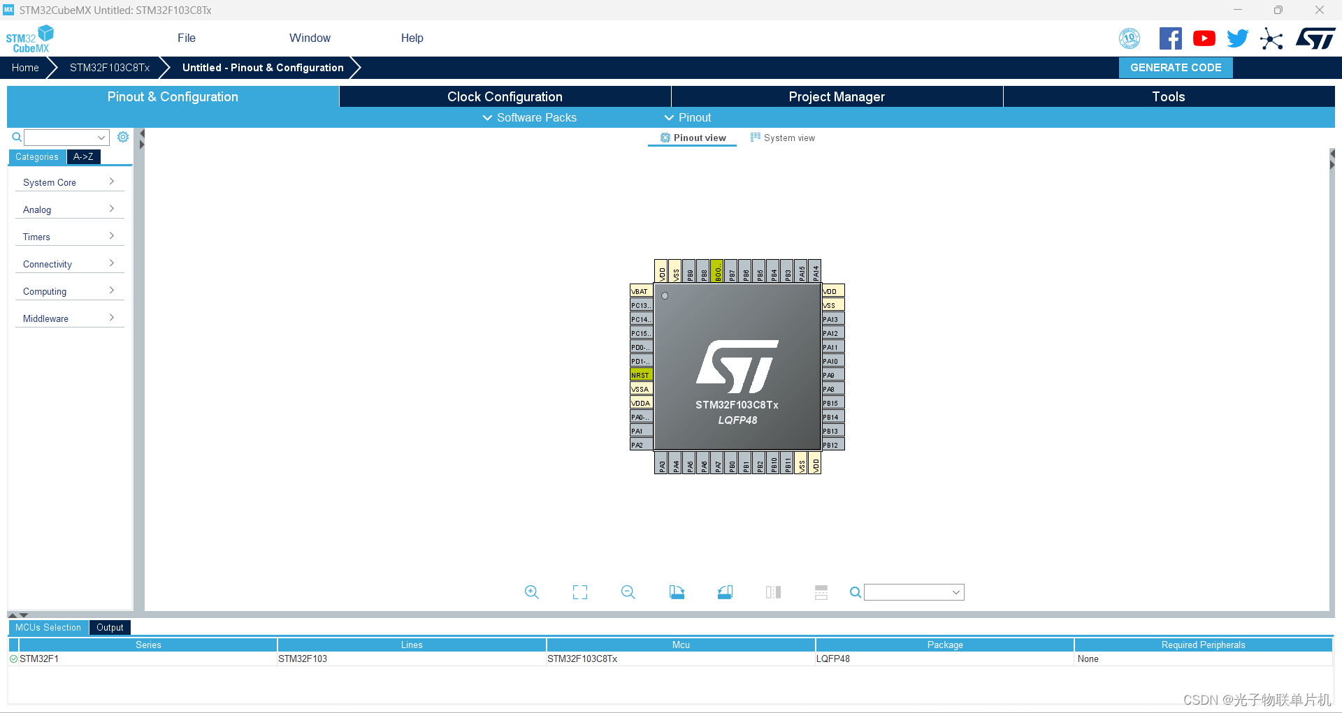 1.新建STM32F103C8T6芯片的STM32CubeMX工程