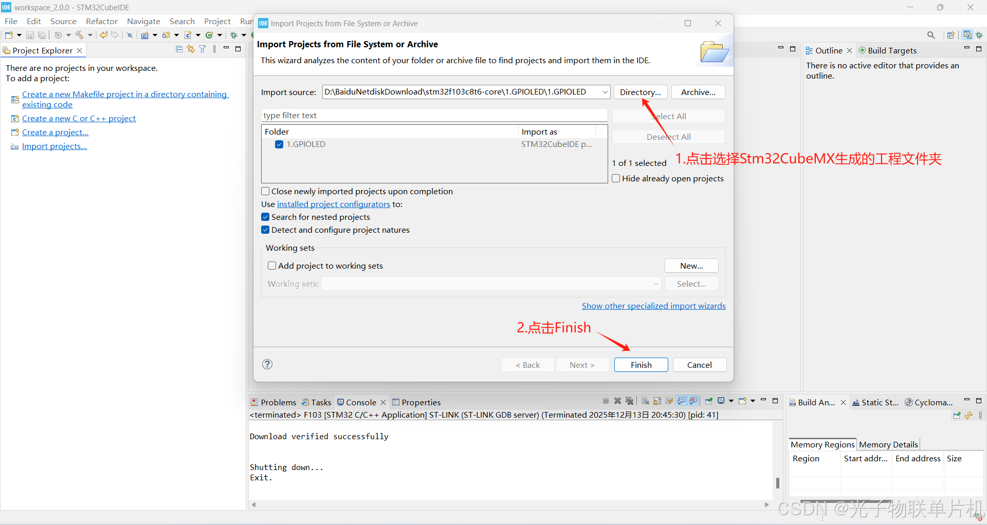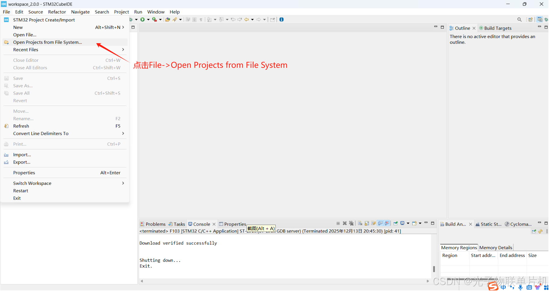1.双击STM32CubeIDE可执行程序,点击File->Open Projects from File System。