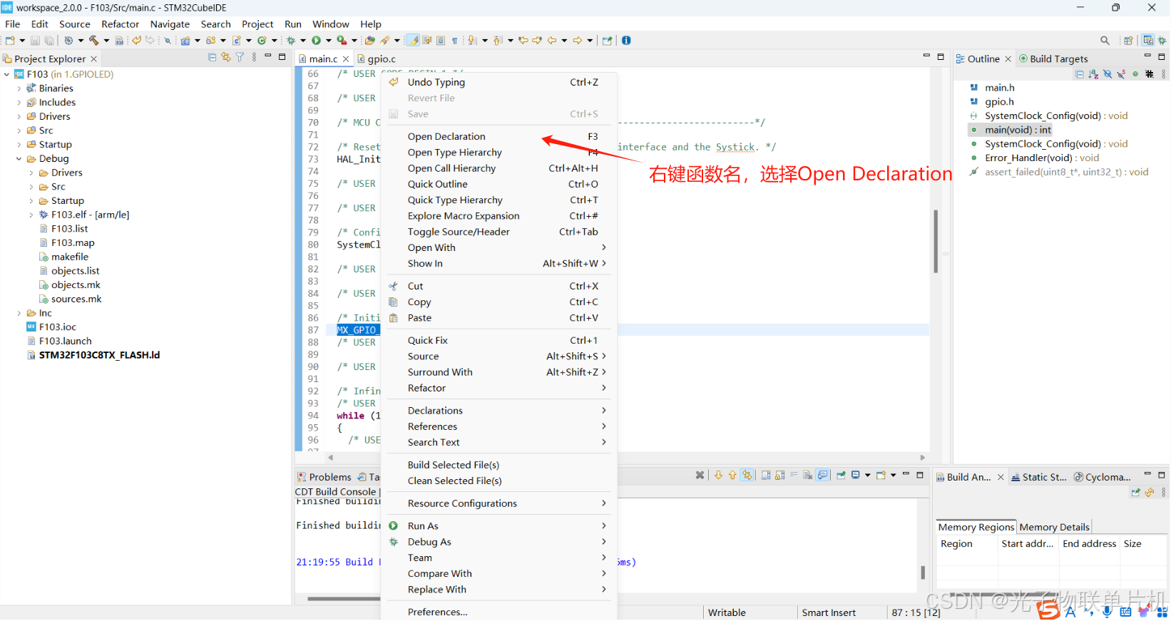 编辑的过程中如果需要查找函数的定义,可以如下图所示,右键函数名,选择Open Declaration,光标就会跳到函数定义处。