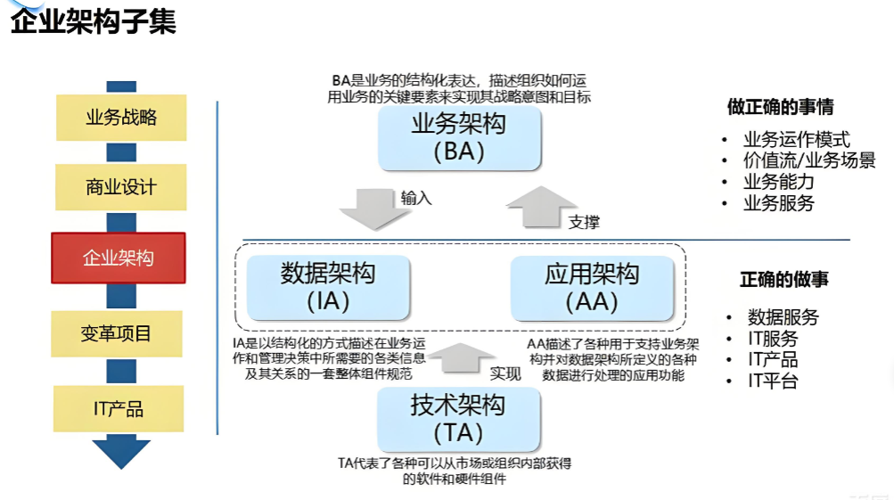 核心关系:业务架构是4A的锚点,其余架构依次派生