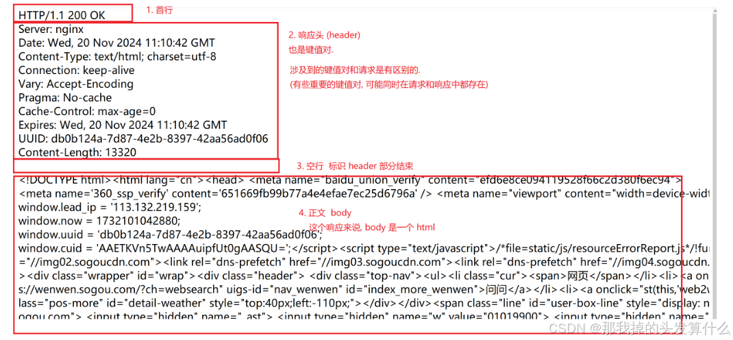 响应:1.首行2.响应头3.空行4.正文