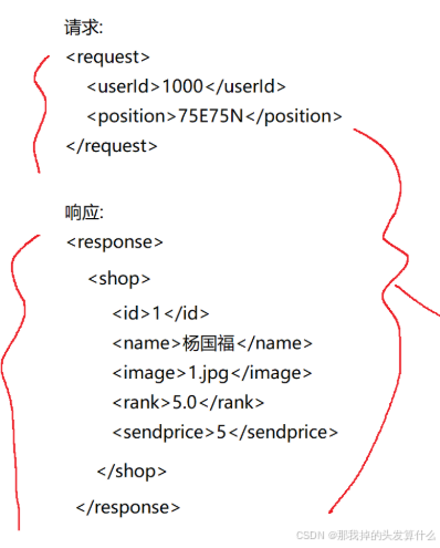 缺点:不支持嵌套和复杂数据类型,字段无自描述性,易因分隔符冲突导致解析错误。 - XML(Extensible Markup Language)