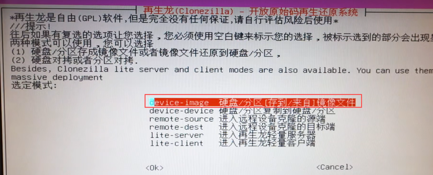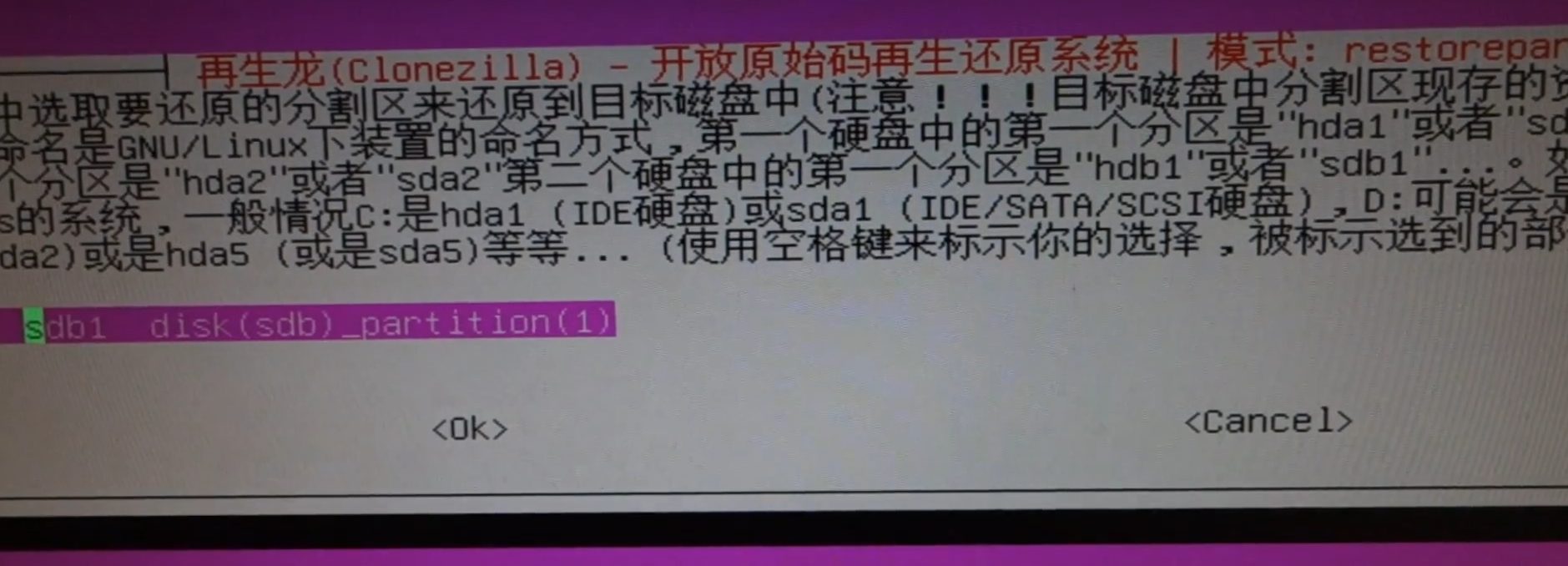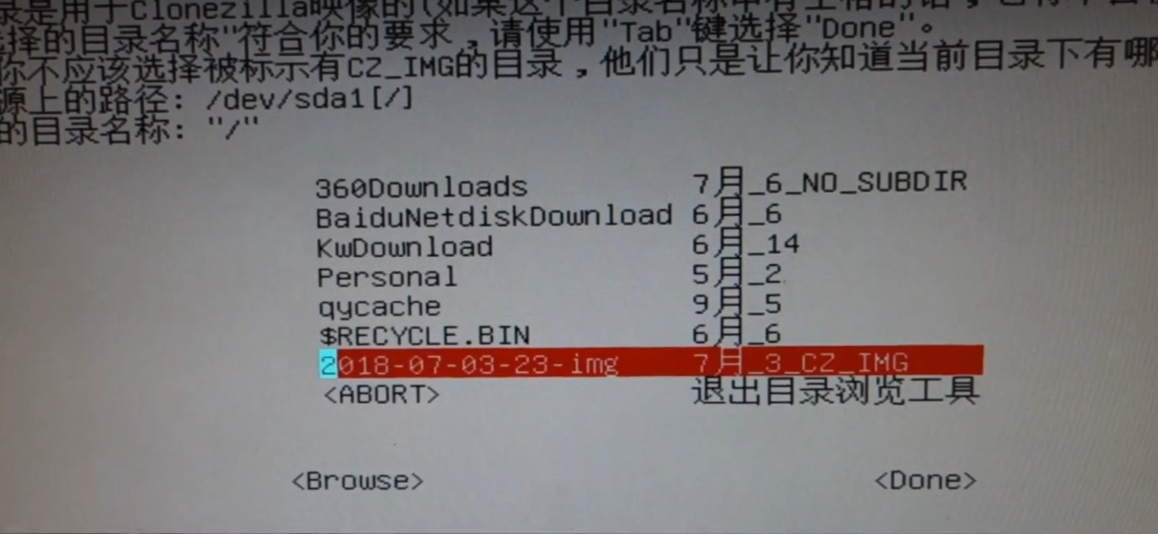 这一步是问你保存镜像文件到哪个目录,但我们是还原,所以就无所谓,直接按Tab,选择Done