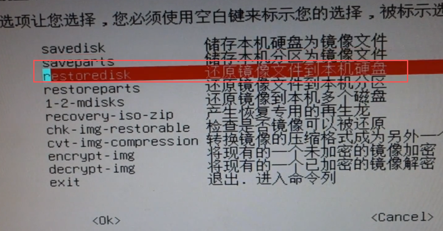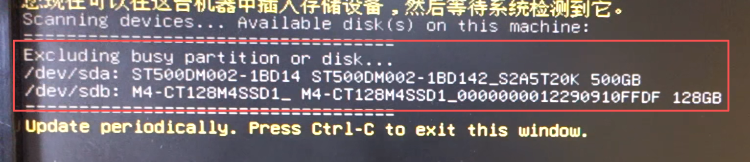 然后将有镜像文件的U盘插入要还原的电脑,在界面上看到它了再按ctrl+c