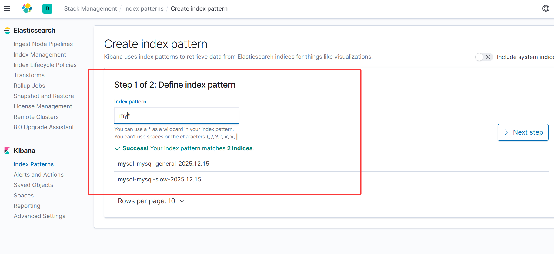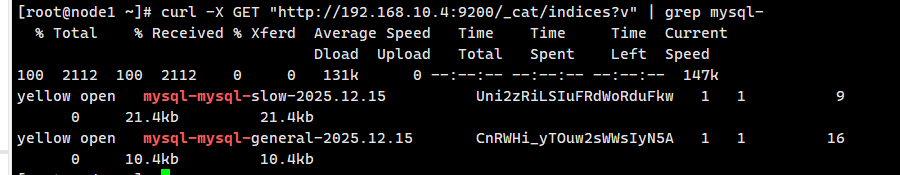 curl -X GET "http://192.168.10.4:9200/_cat/indices?v" | grep mysql-