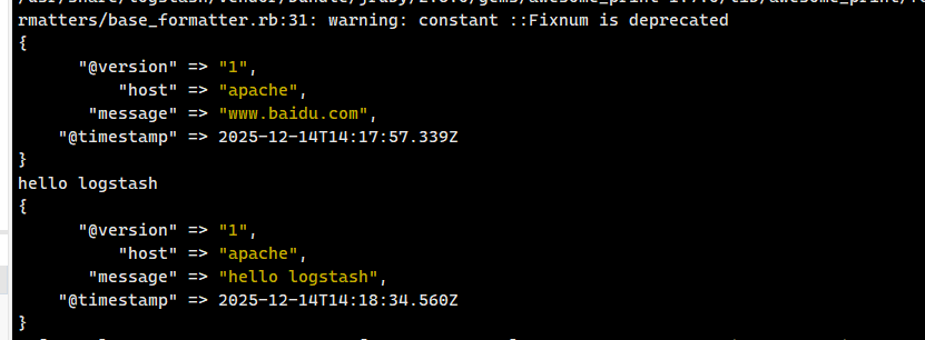 - 输出(Output):将处理后的数据发送到 Elasticsearch、文件、Kafka 等目标。