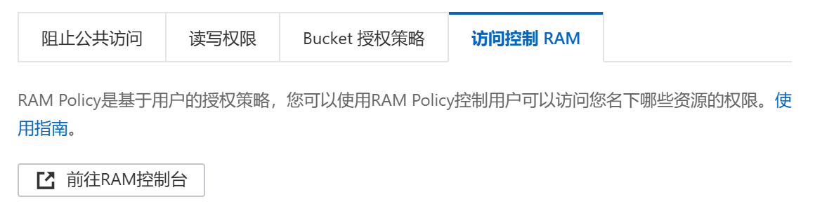 | AliyunOSSReadOnlyAccess | 系统策略 | 只读访问对象存储服务(OSS |