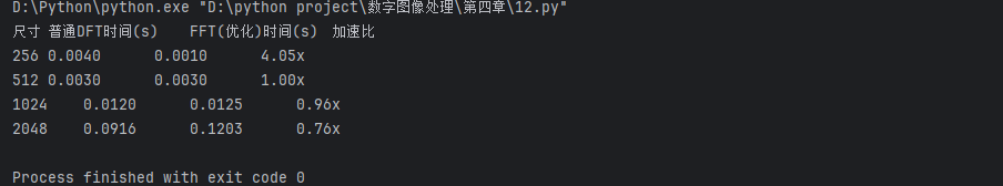 print("尺寸\t普通DFT时间(s)\tFFT(优化)时间(s)\t加速比")