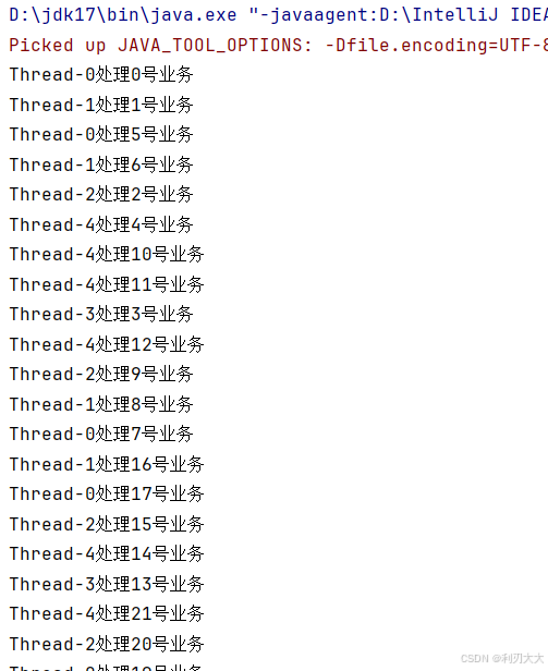 System.out.println(Thread.currentThread().getName() + "处理" + index + "号业务");