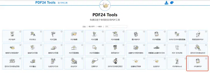 3、通过『PDF24 Tools』将JPG转为PDF