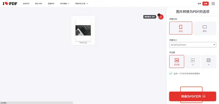 一款专门做PDF相关功能的软件,支持将JPG转为PDF,还支持批量转换,可以直接上传整个文件夹,还能设置页面大小、边距这些,转出来的PDF比较规整,转完的PDF清晰度和原图基本一致,没有明显压缩。