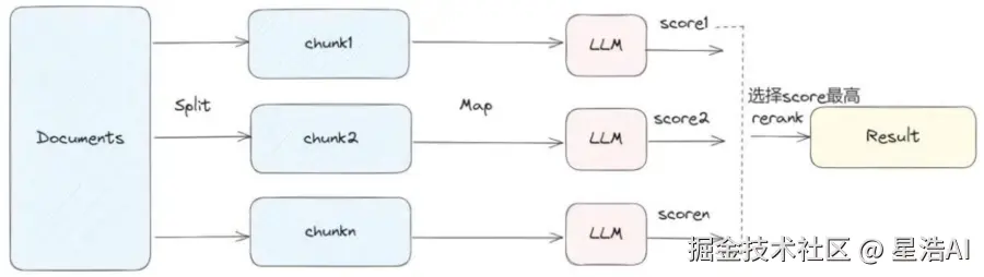 对每个chunk做prompt,然后打个分,然后根据分数返回最好的文档中的结果。