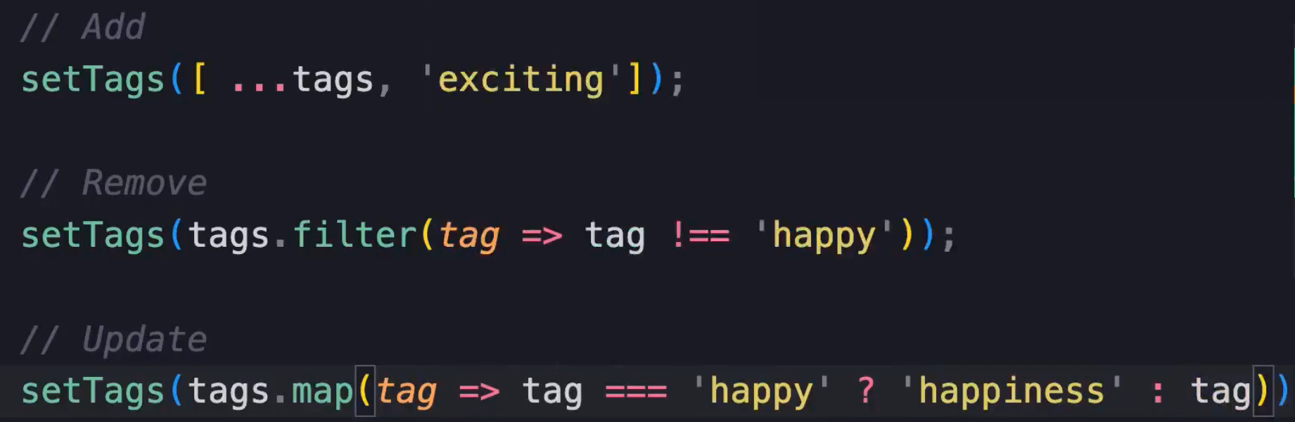 - 使用对象时,避免深层嵌套结构(很难更新),尽量使用扁平结构
