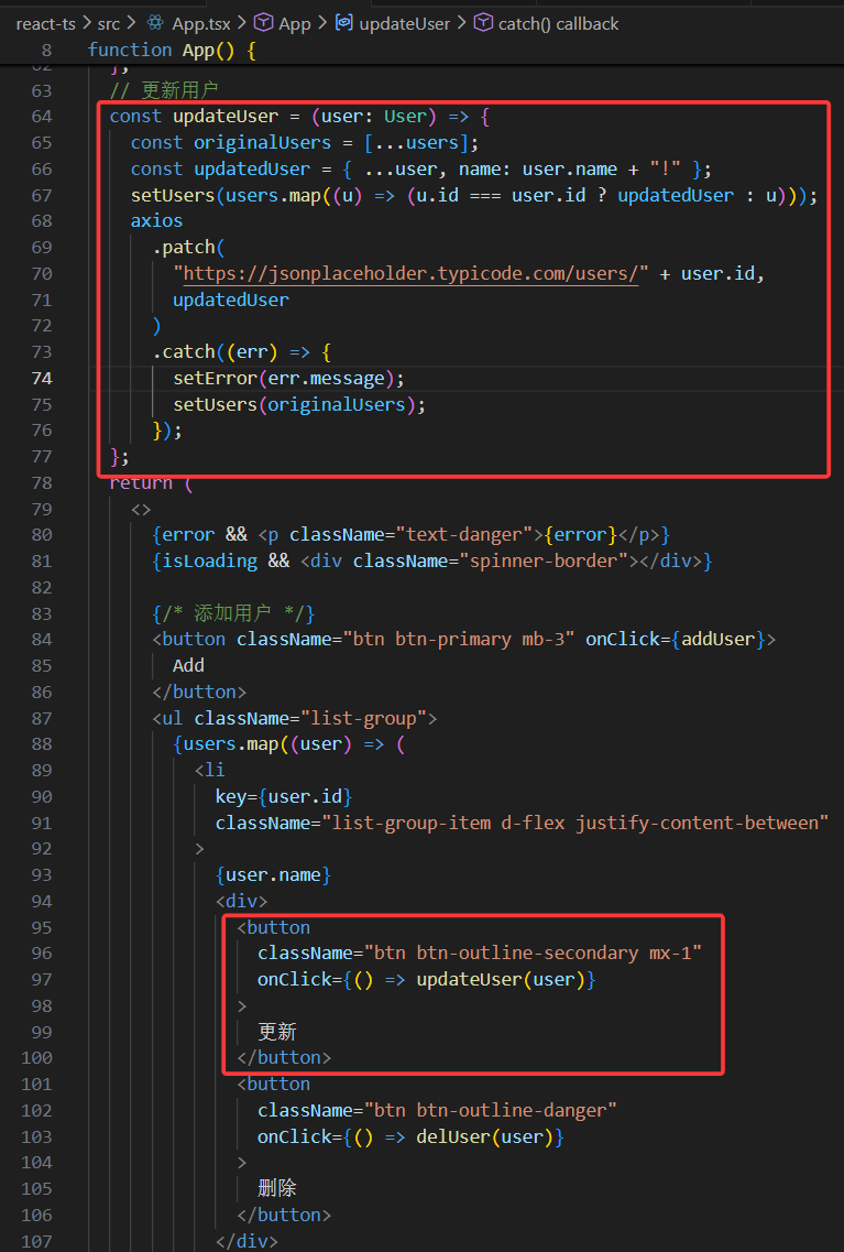 在React中不应该更新现有的状态对象,而是应该给React一个全新的状态对象
