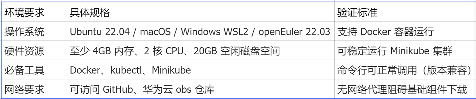 | 灵衢模拟集群 | 基于 Minikube 构建单节点 / 多节点虚拟灵衢集群 | 无硬件环境支撑 |